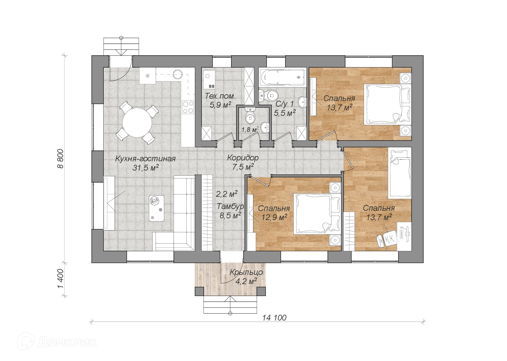 ✅Площадь дома: 105 м²;