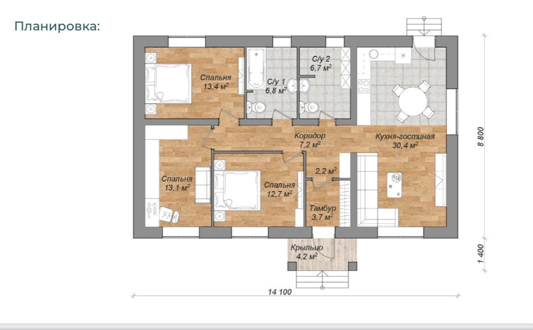 Общая площадь 105 м2