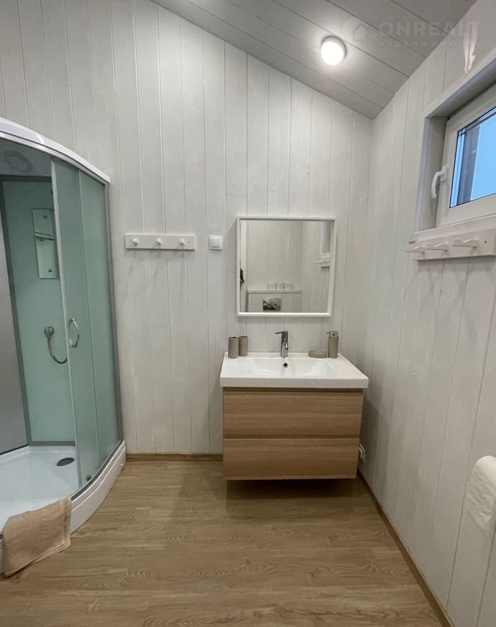 Санузел с душевой кабиной и теплым полом.
