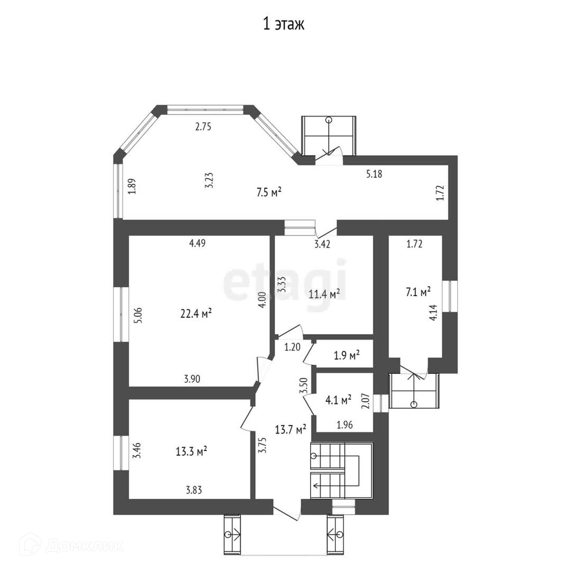 Грамотная функциональная планировка: 2 спальни (одна на 1-м этаже, и одна на 2-м этаже), 2 санузла (на 1-м этаже, на 2-м этаже – ванна, душевая кабина, гостиная. Высота потолков - 3 метра.