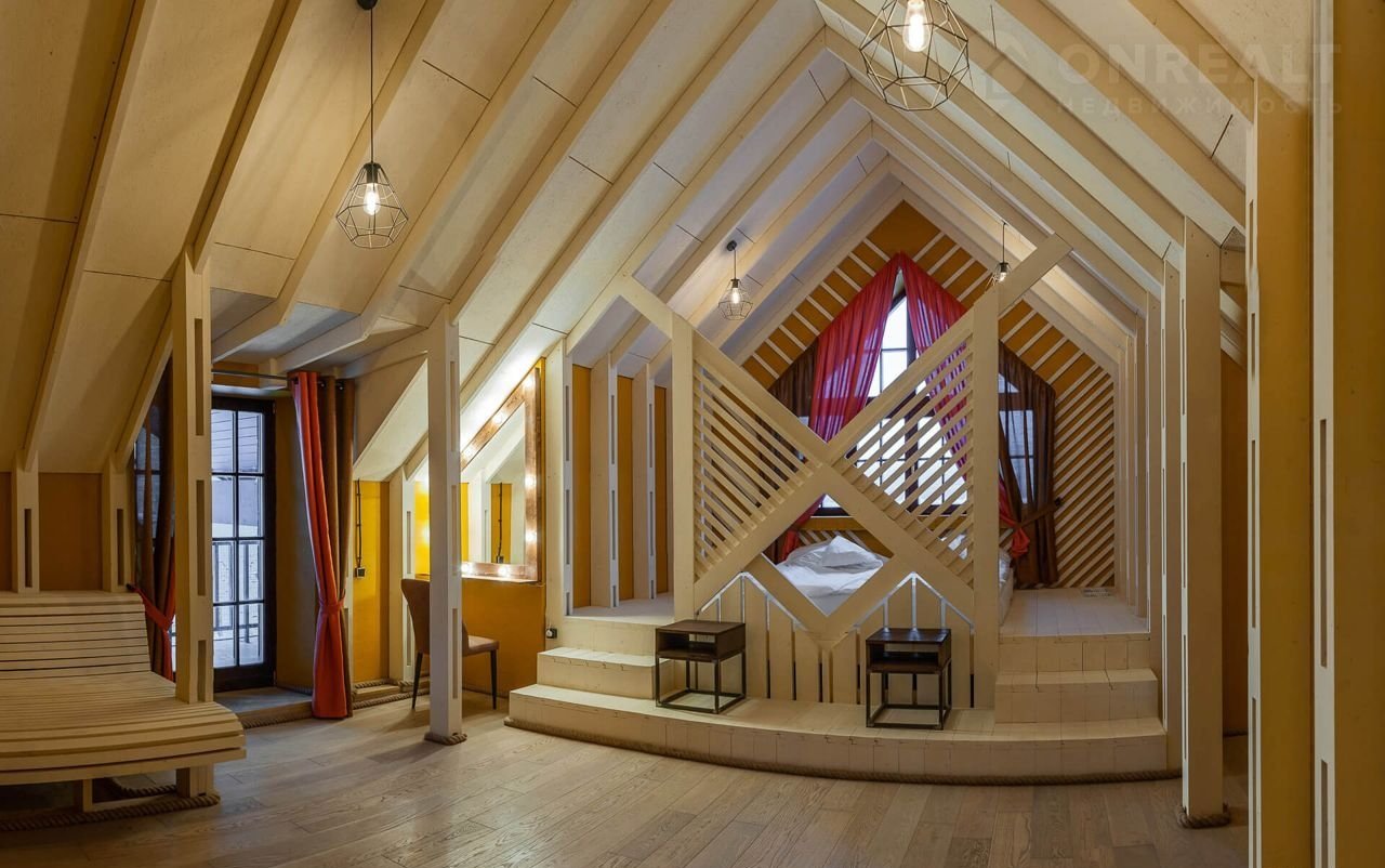 Уникальной особенностью коттеджа является просторный банкетный зал в стиле loft, оборудованный камином.