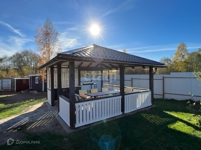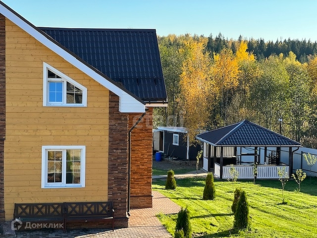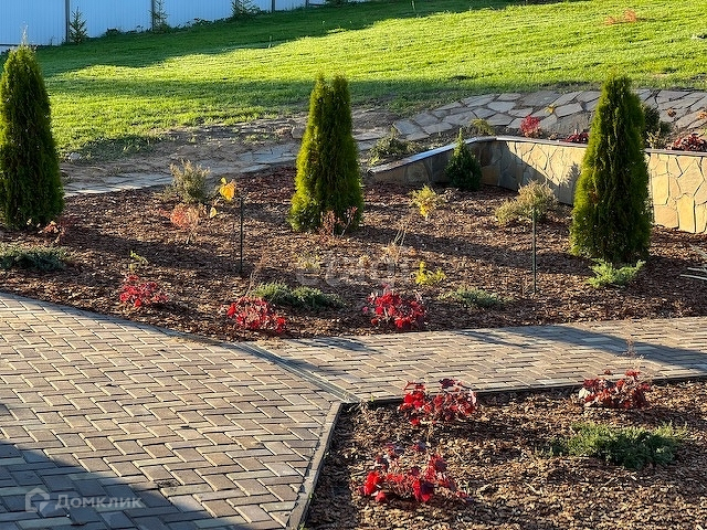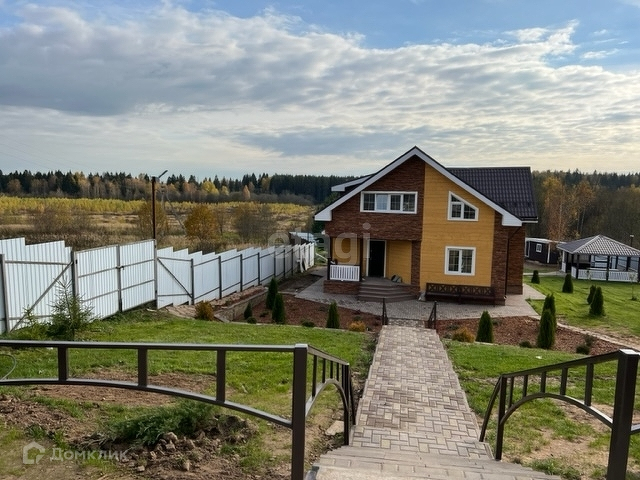 Дом расположен на склоне холма с прекрасными видами на поле, лес, речку. Имеется крытый просторный паркинг, автоматические ворота. Ступени лестницы, ведущей к дому, оснащены греющим кабелем во избежание обледенения. Перед домом оборудована зона ландшафтного дизайна с подпорной стенкой, облицованной натуральным камнем. На участке высажены плодовые и хвойные деревья и кустарники, проведена дренажная система. Имеется просторная беседка с летней кухней, стационарным мангалом, а также несколько подсобных помещений.