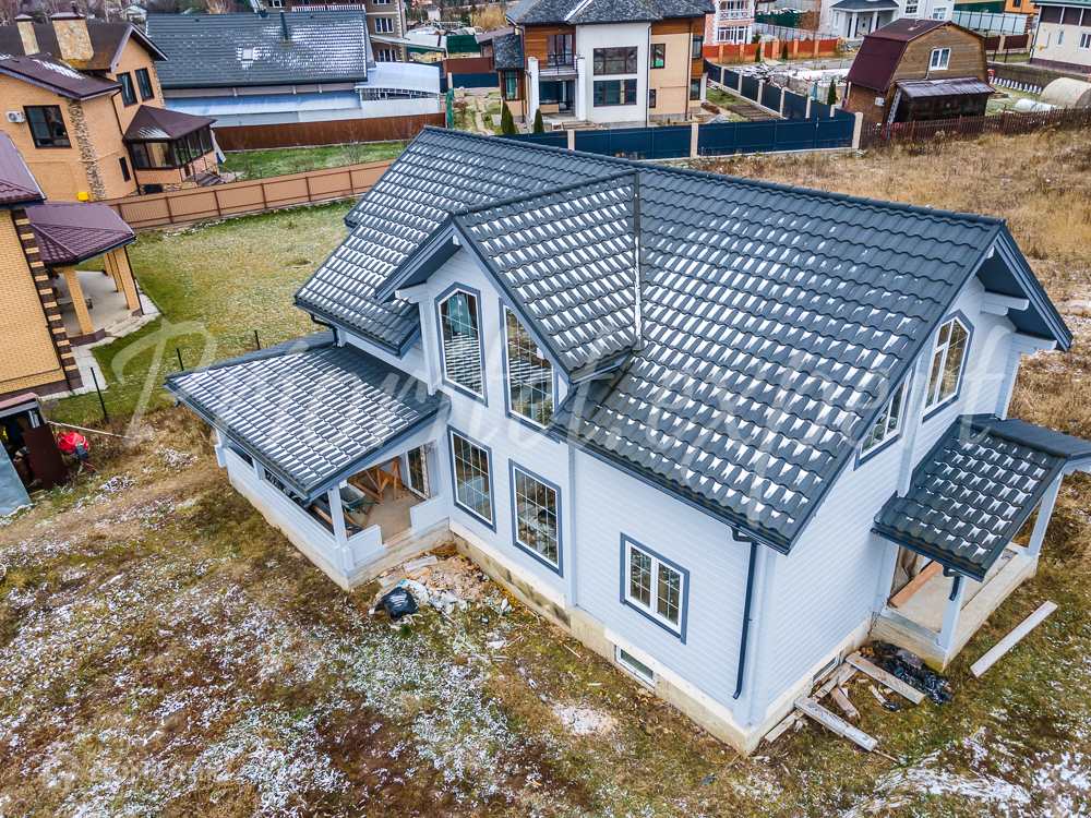 Дом: Загородный дом из клееного бруса 320 м2 с предчистовой отделкой в охраняемом коттеджном поселке. Дом построен по индивидуальному дизайнерскому проекту в 2019 году. Материал стен – северная ель, фундамент – монолитная плита 300 мм, М-600, кровля из композитной черепицы.