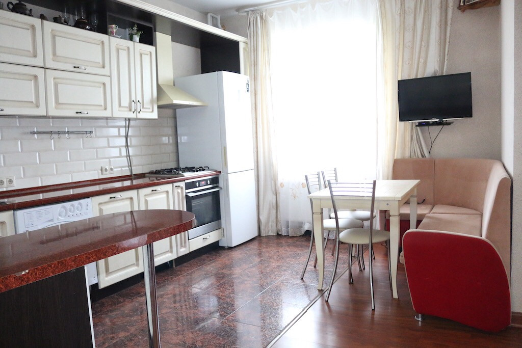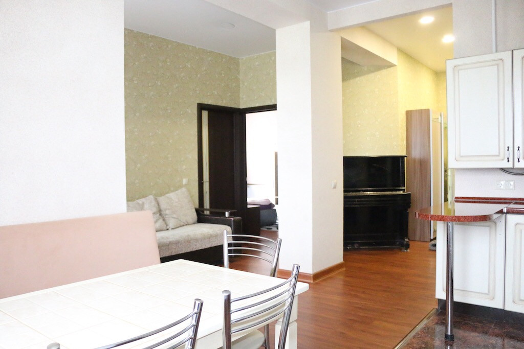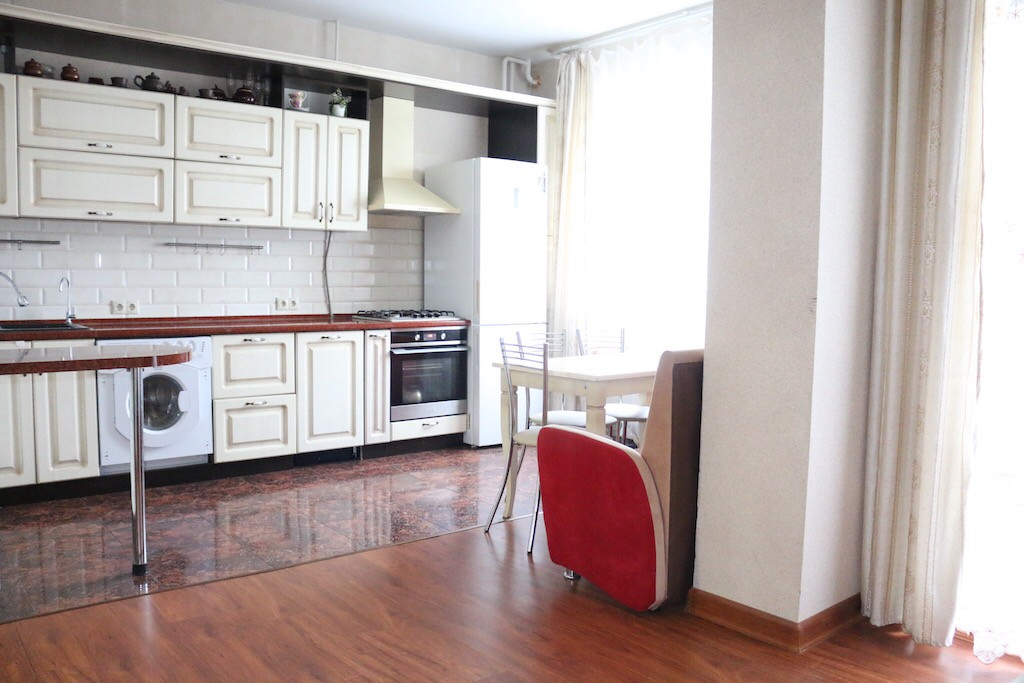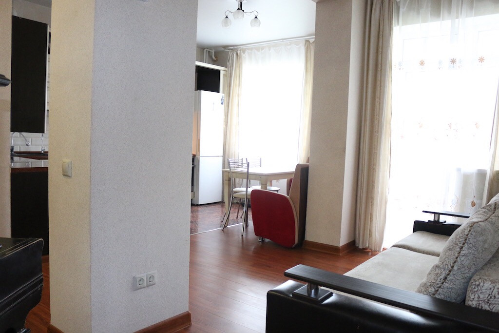 Кухня/гостиная 24.4 кв.м., две изолированные комнаты 14,6 и 11.6 кв.м, балкон 4.8 кв.м. застеклен/утеплен, теплые водяные полы во всей квартире регулируются по зонам, раздельный с/у, потолки 3 метра, вид из окон на тихий и зеленый двор, скоростной интернет.