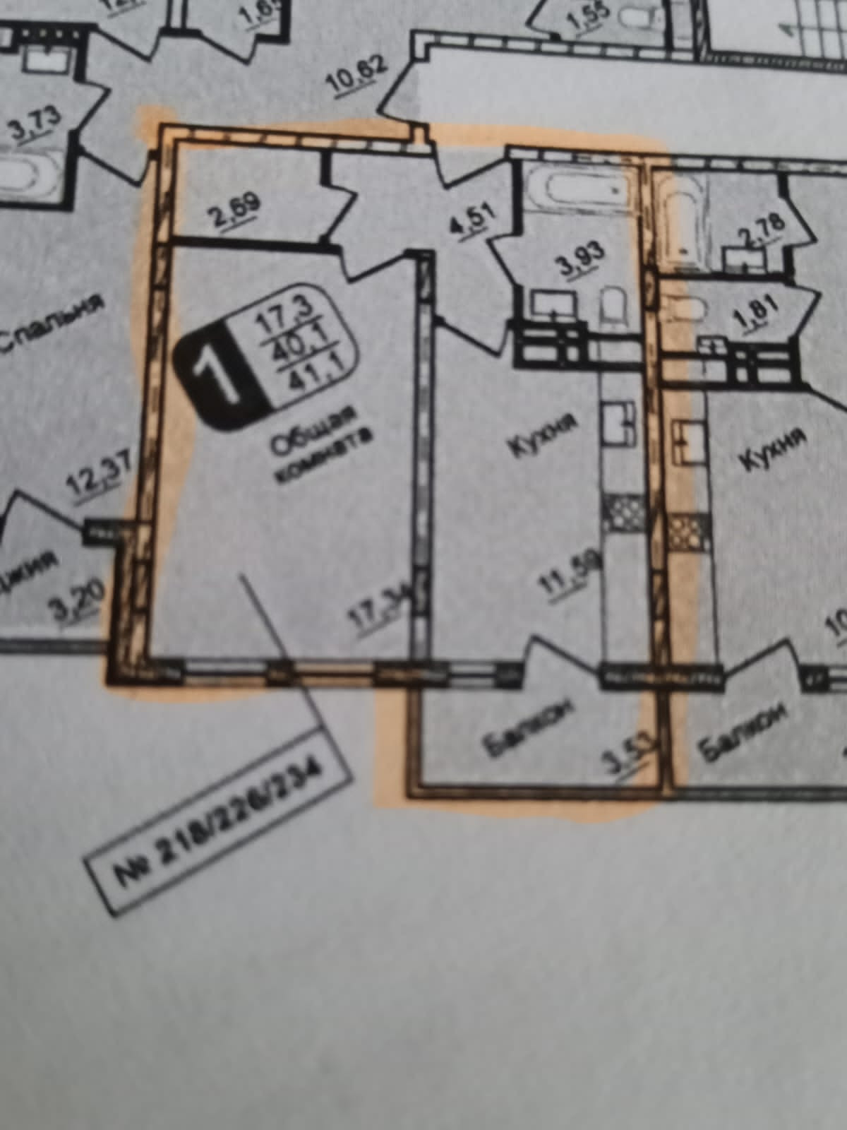 Общая площадь 41 м2