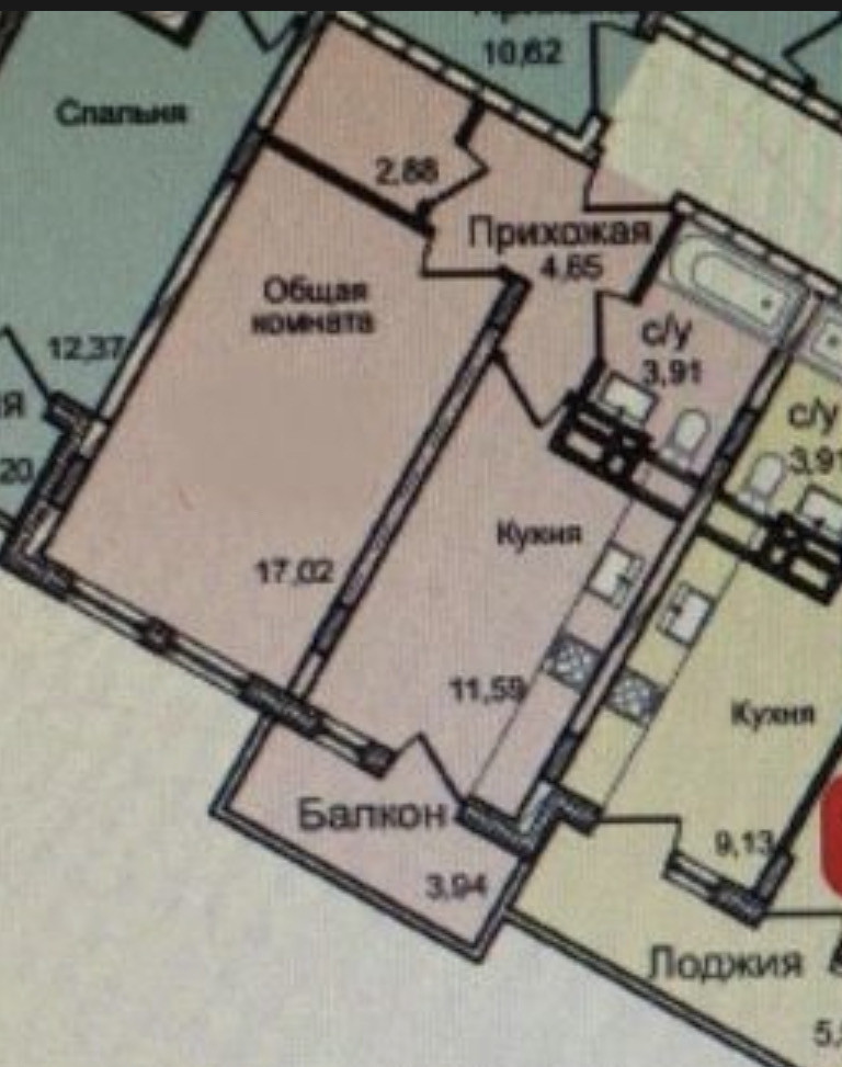Жилая площадь 19 м2