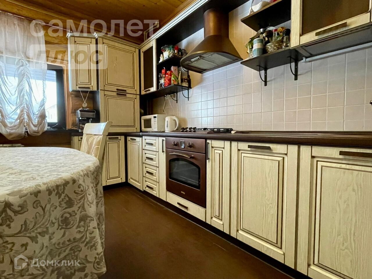 Бревенчатые дом 125.5 кв.м, со всеми коммуникациями. При продаже остается вся мебель и техника. На первом этаже проведен теплый пол.