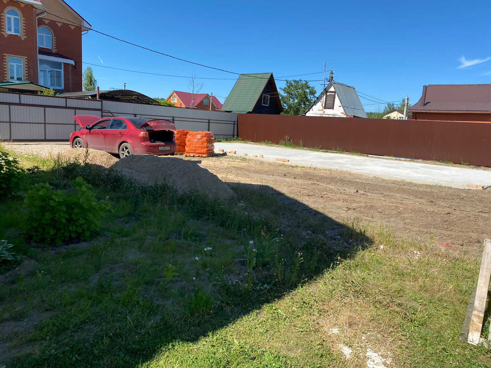 Ухоженный участок правильной формы, на участке залит фундамент 7х16.