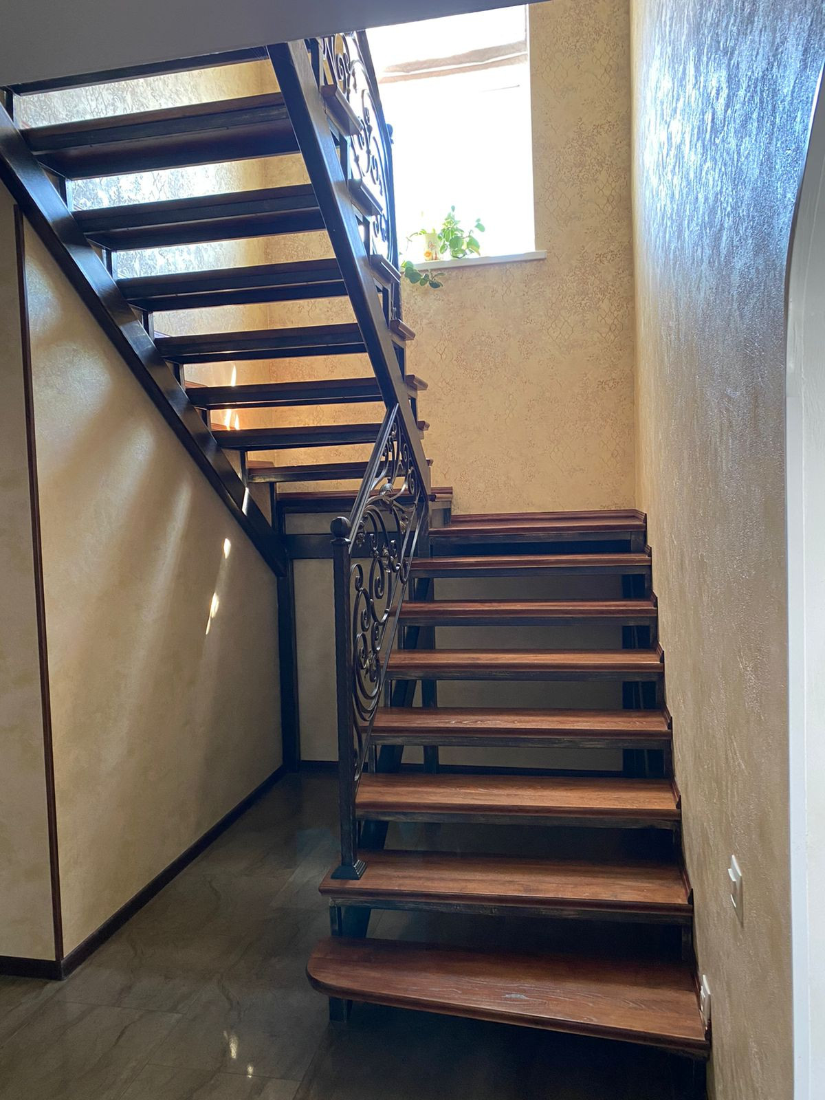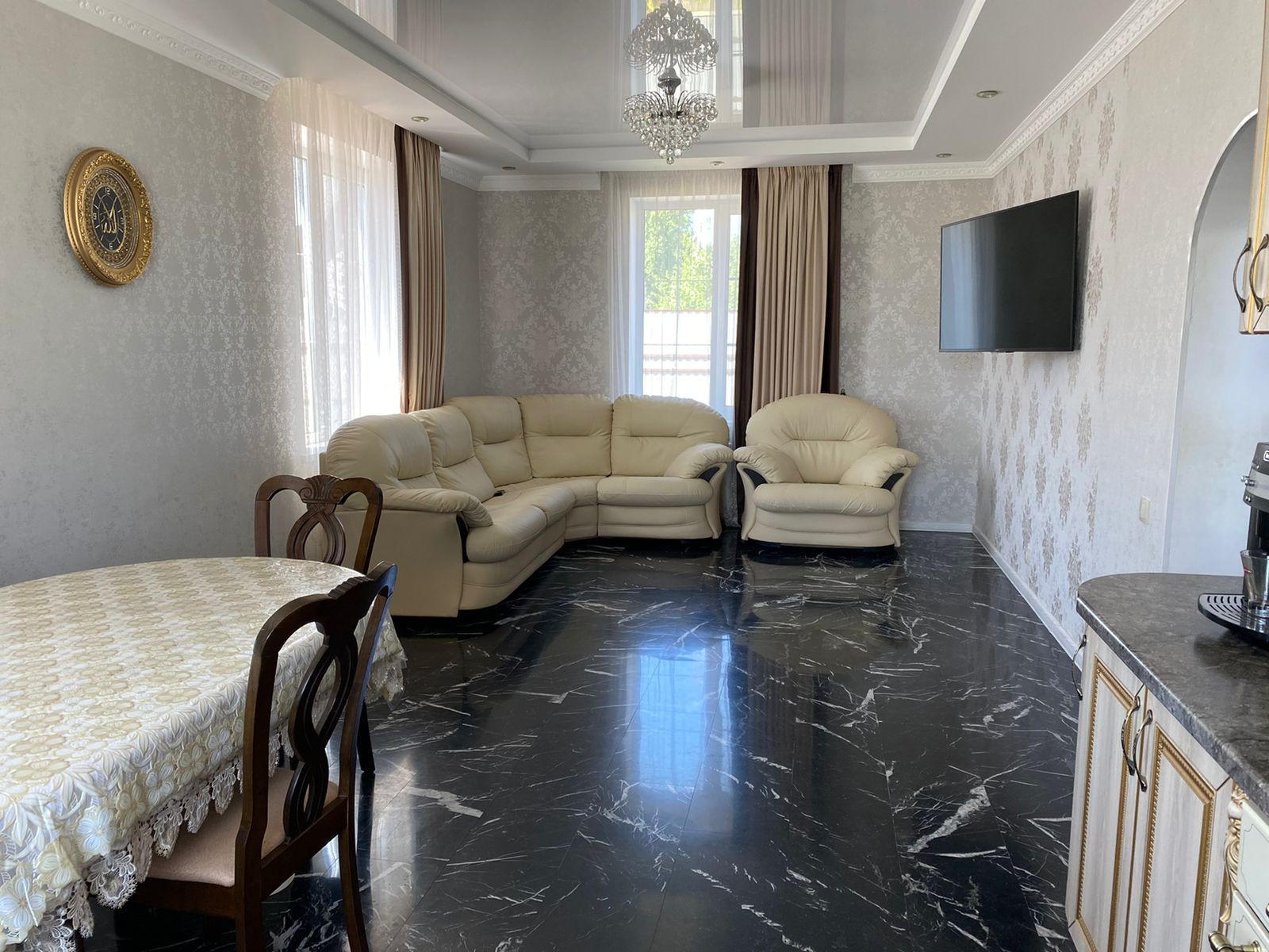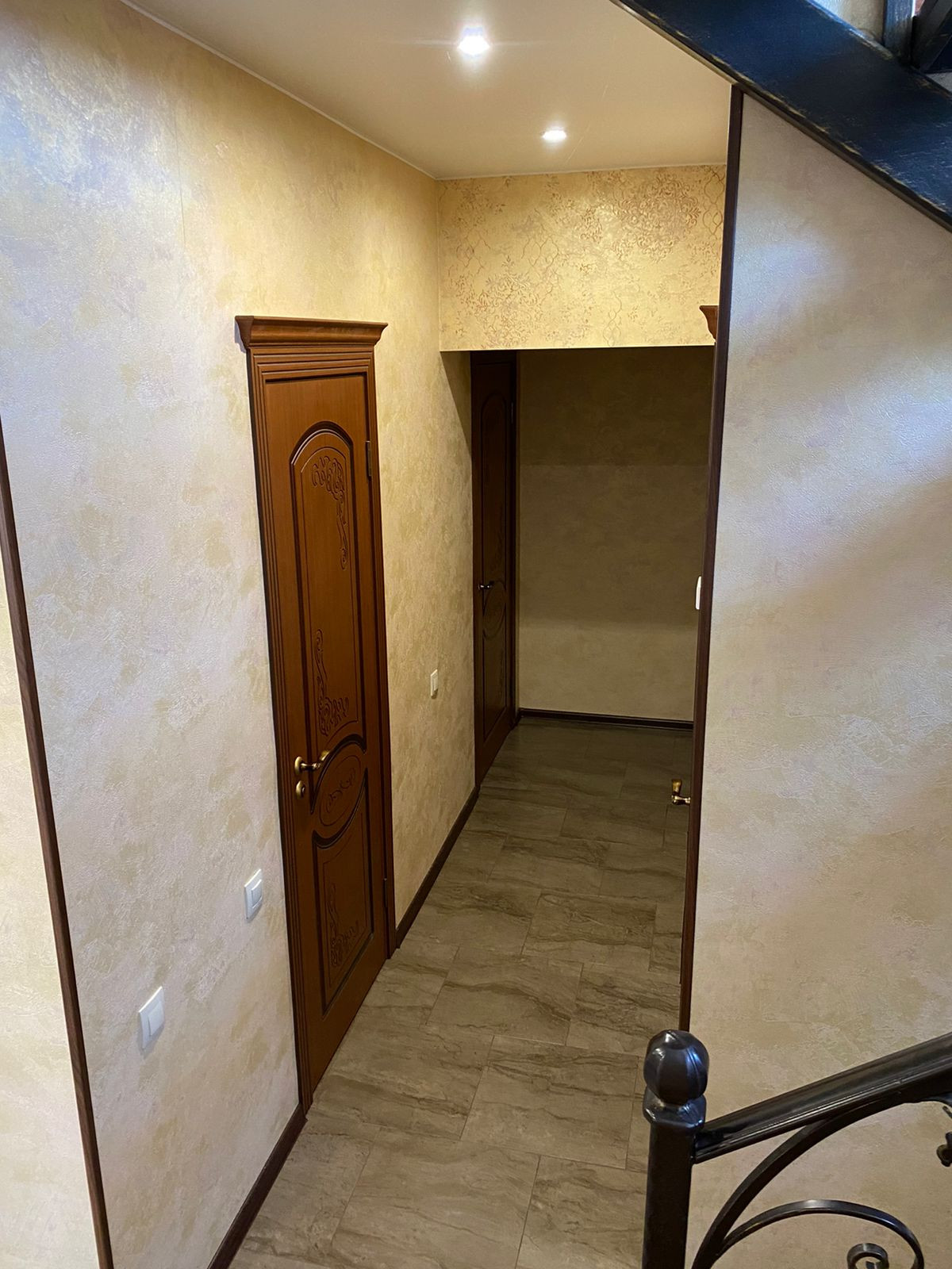 На первом этаже расположены: просторная кухня-столовая, гостевая спальня, санузел, бойлерная, гардеробная. Высота потолков 2м70см.
