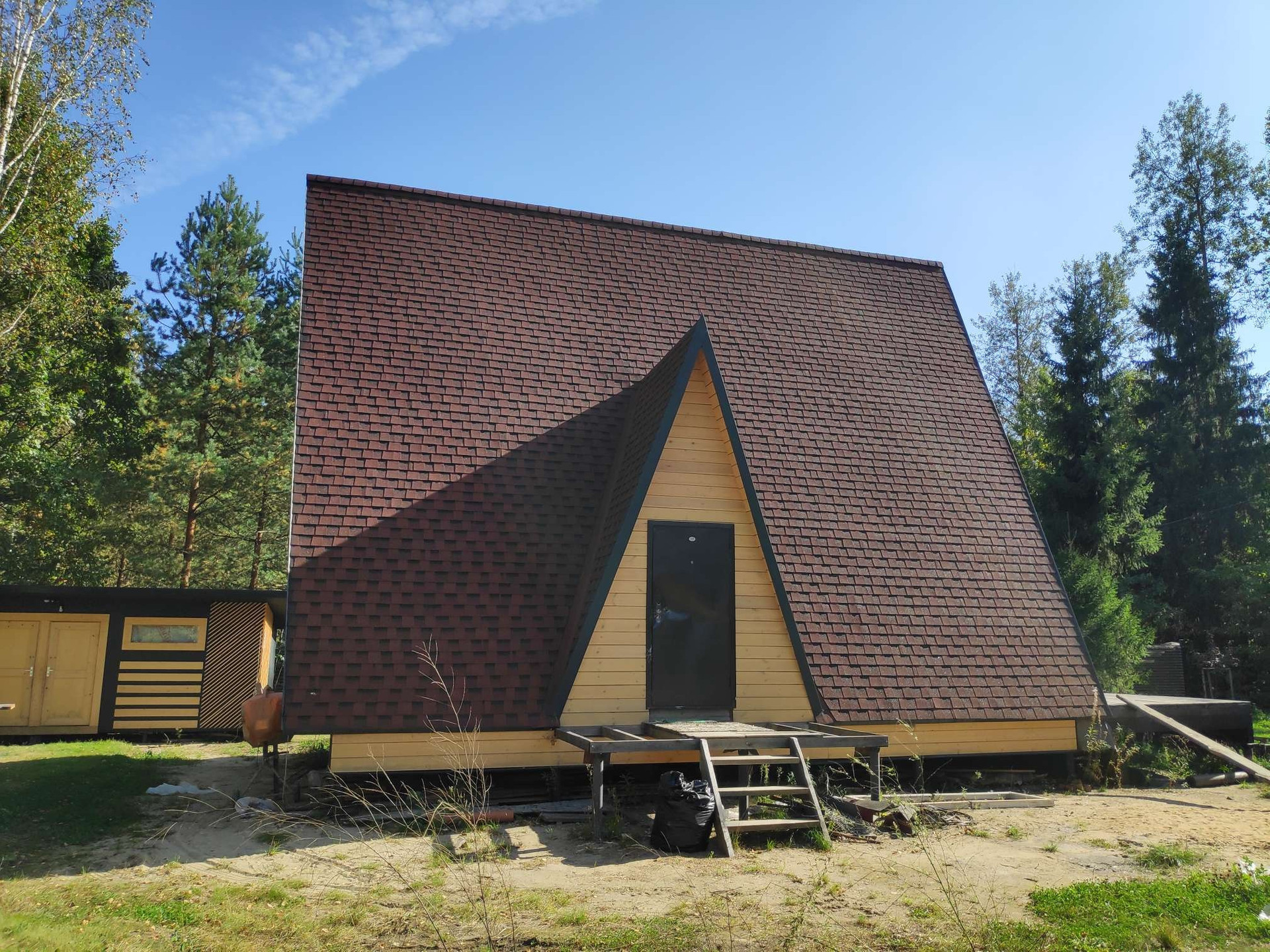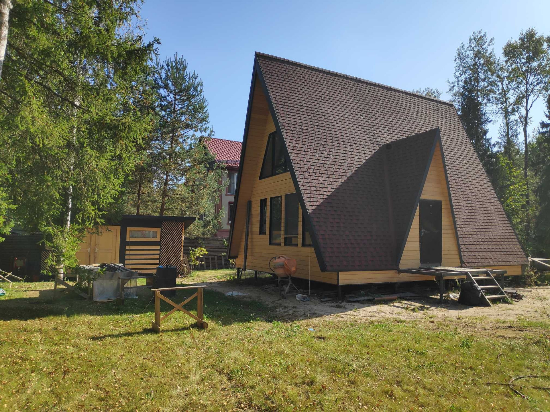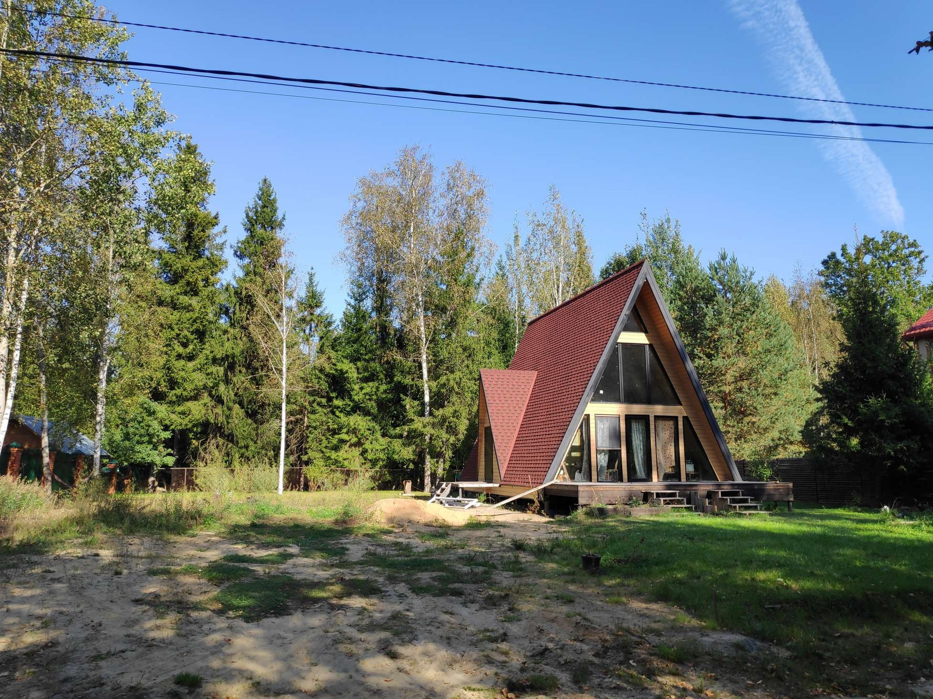 Продаю дом А-фрейм в СНТ на участке 10сот. Дом строил для себя принимая участие на всех этапах строительства. Зарегистрирован как жилой. Требуется внутренняя отделка. Есть временный душ и инсталляция. Каркас, утепление 200мм, качественные материалы. Дом теплый, отопление-тёплые полы, батареи. Котел бош, циркуляционные насосы грюндфос, бойлер на 150л. Большой газгольдер, на 4,8куба, почти полный газа. Вода-скважина с кессоном, мощный насос, давление не скачет. Система канализации не требующая откачки и обслуживания (две ямы+поле фильтрации). Электрощит на однофазный ввод, при желании можно переделать на три фазы 15кв, возможность есть, необходимости нет. Есть стабилизатор и заземление. Интернет кабель подключен к системе оператора и заведён в дом, оплачен год интернета. Для аварийной подачи энергии генератор с автоматикой.