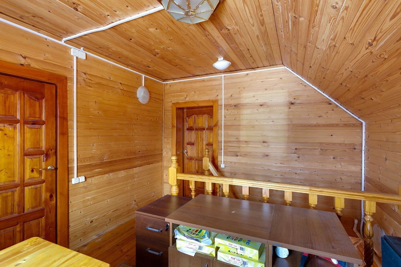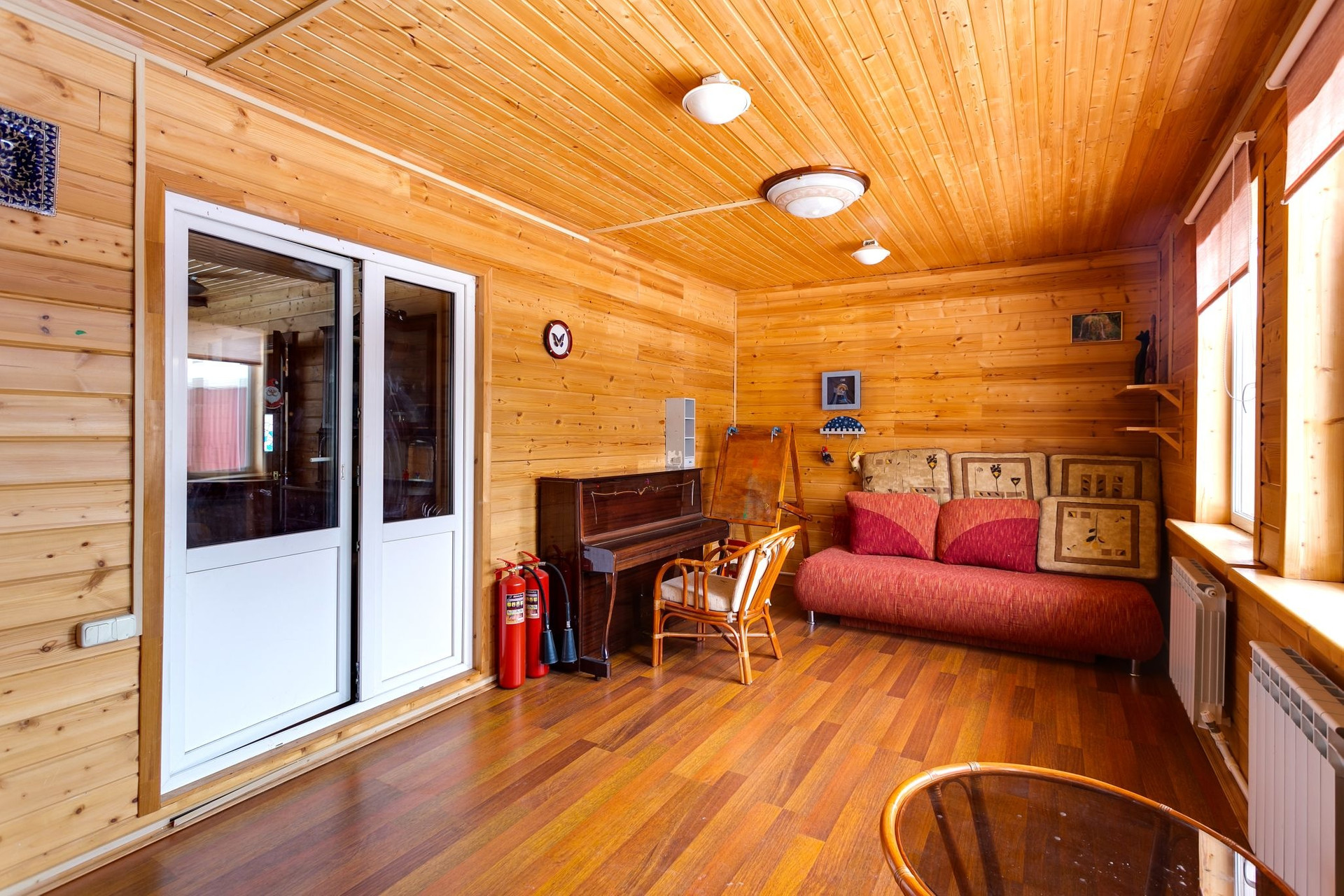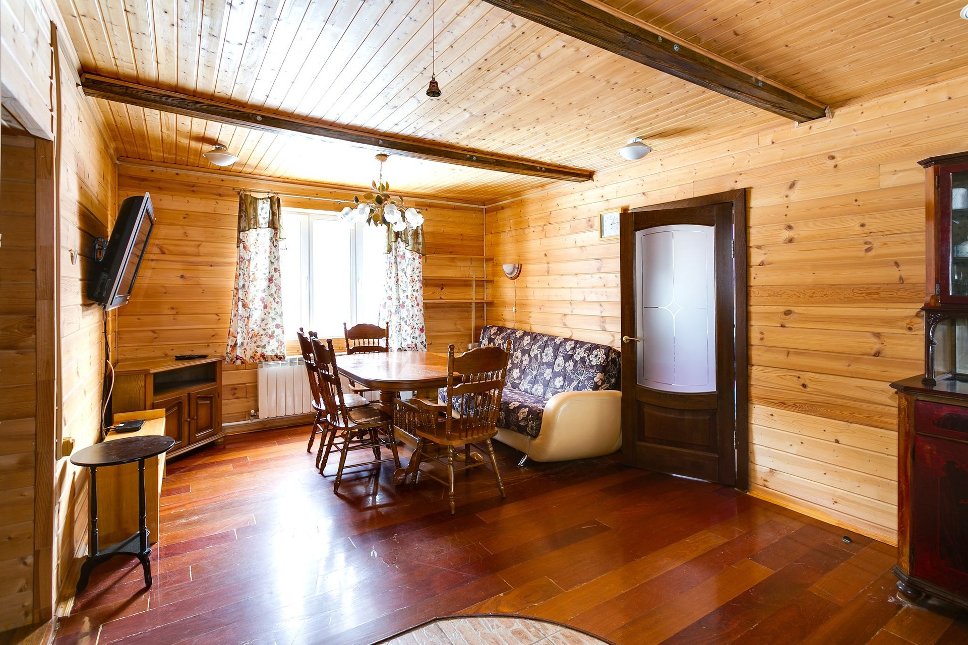 В большом доме на 1 этаже - прихожая, кухня-столовая, большая веранда ( возможно использовать как спальню ), санузел, на 2 этаже - 2 спальни, на 3 этаже - одна большая спальня.