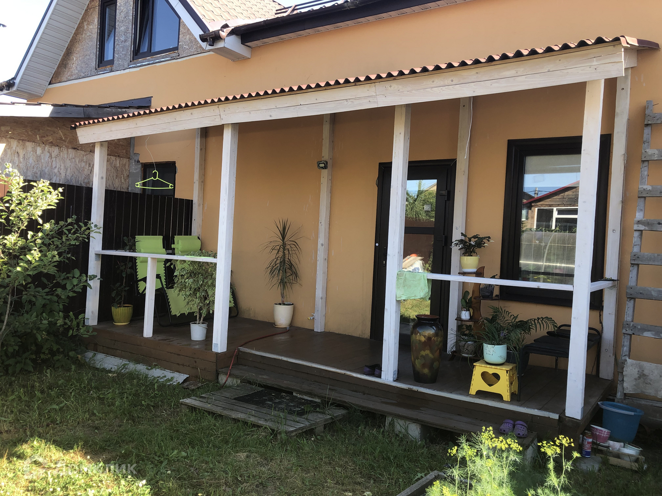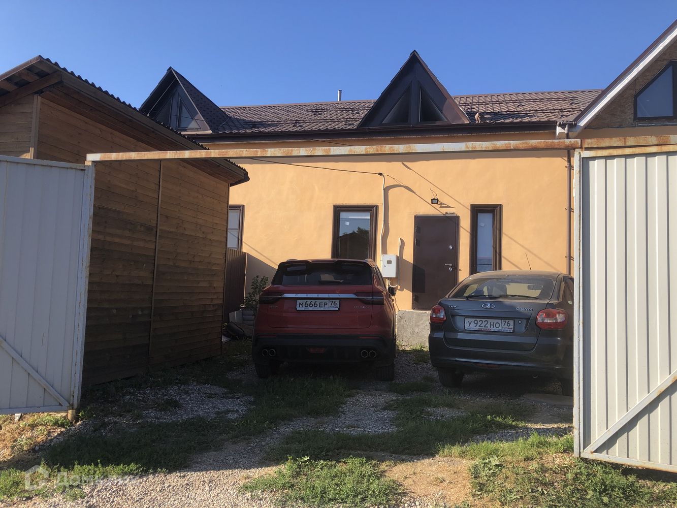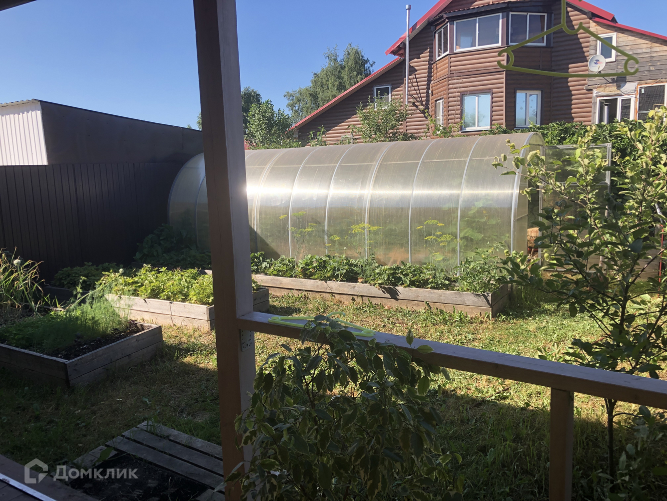 В вашей собственности две сотки земли по обе стороны. Перед домом место для 2-х машин и сарай для хранения доп. хозяйственных вещей. За домом - теплица, летняя Веранда, 3 грядки с клубникой и зеленью, 5 колоновидных и карликовых яблонь, зона барбекю.