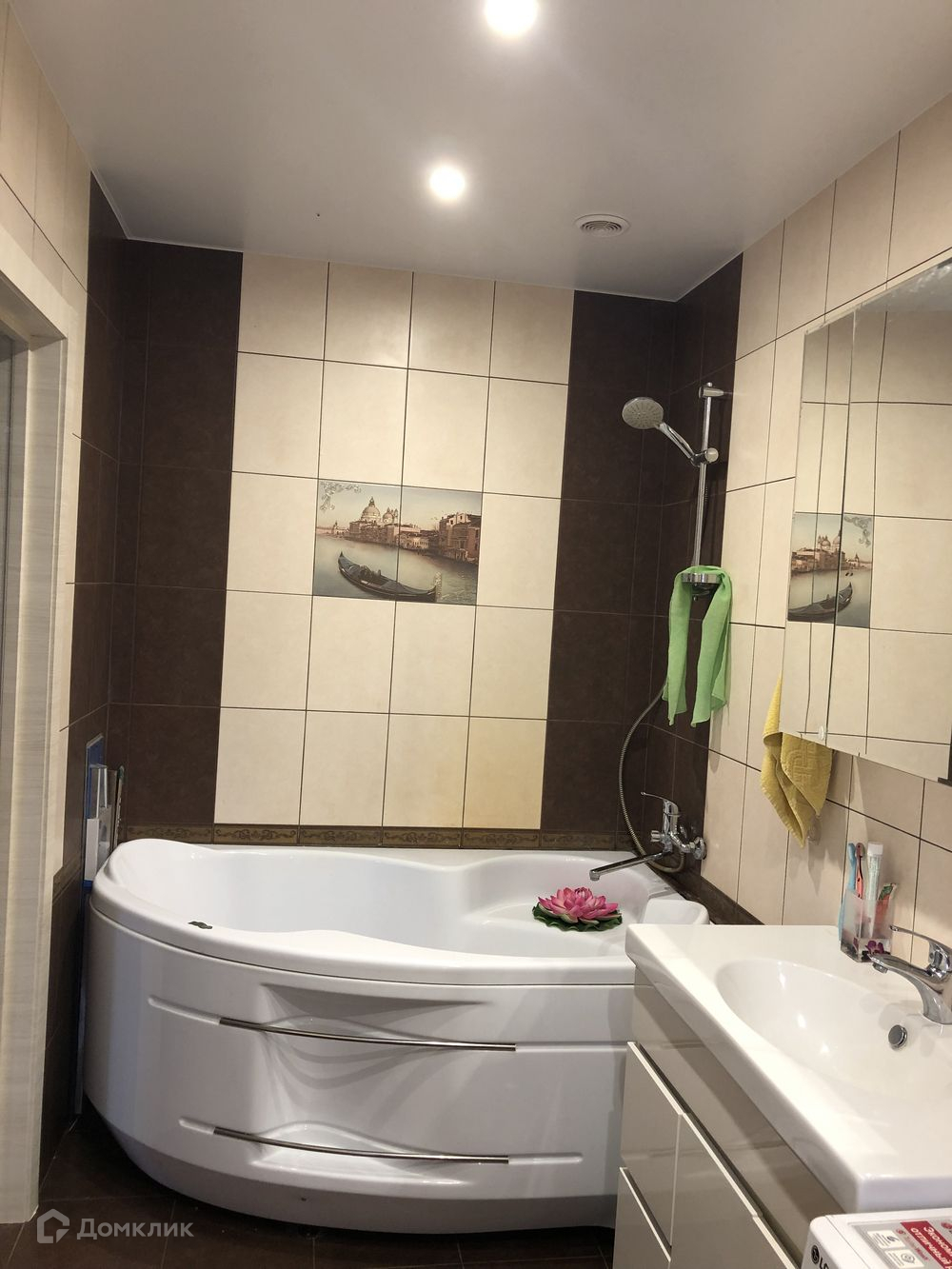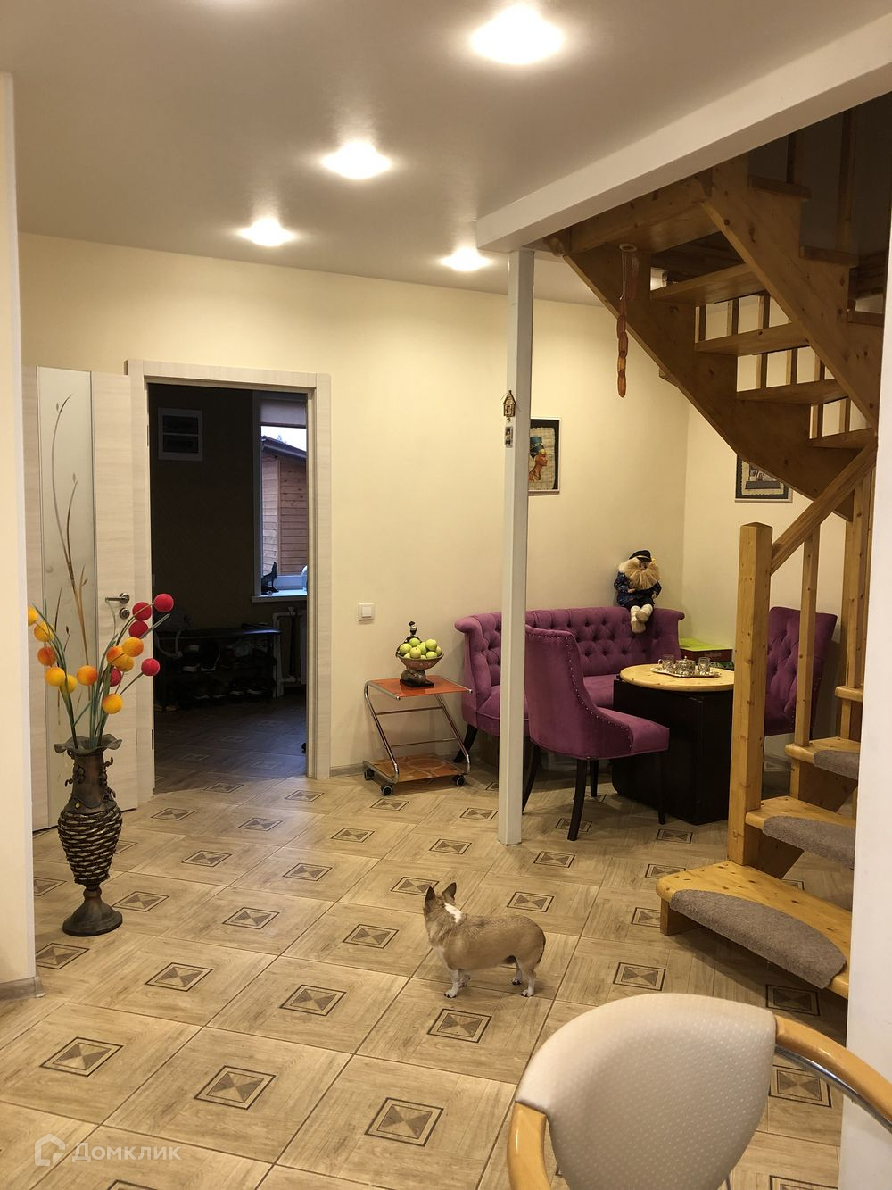 Общая площадь 110 кв.м. Два санузла. На первом этаже большая кухня-гостиная 39 кв.м., ванная комната и прихожая по 8 кв.м. В прихожей большой встроенный гардероб. На всём первом этаже теплый пол, плитка, кафель, натяжные потолки, дорогие обои. Правильно разделены зоны освещения. Выделенная линия интернет, оптоволокно, хорошая скорость..