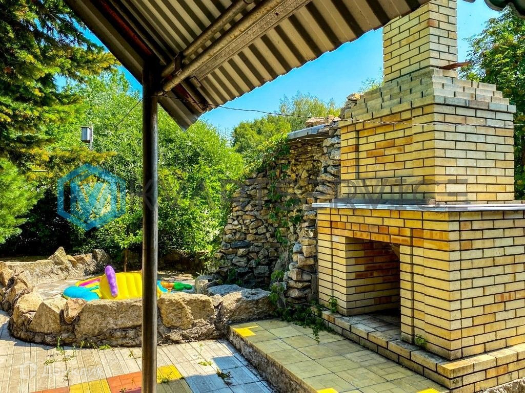 На территории расположены две мангальные зоны, тандыр, большой кирпичный гараж, баня, зона отдыха со спуском в собственный пруд, декоративный водопад, сад, огород. Вода в водоёме чистая, подходит для купания, катания на лодке, рыбалки прямо со двора! В садовой части множество посадок, большая теплица, колодец с чистой, питьевой водой. Две кухни: постоянная и летняя с выходом в одну из зон барбекю.