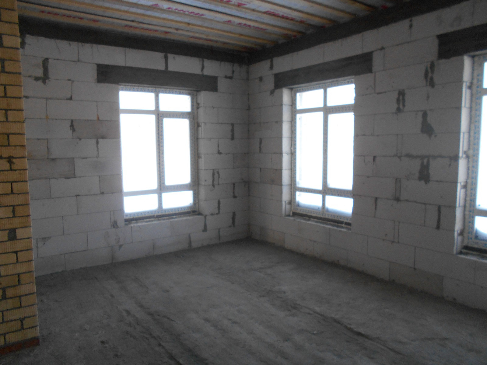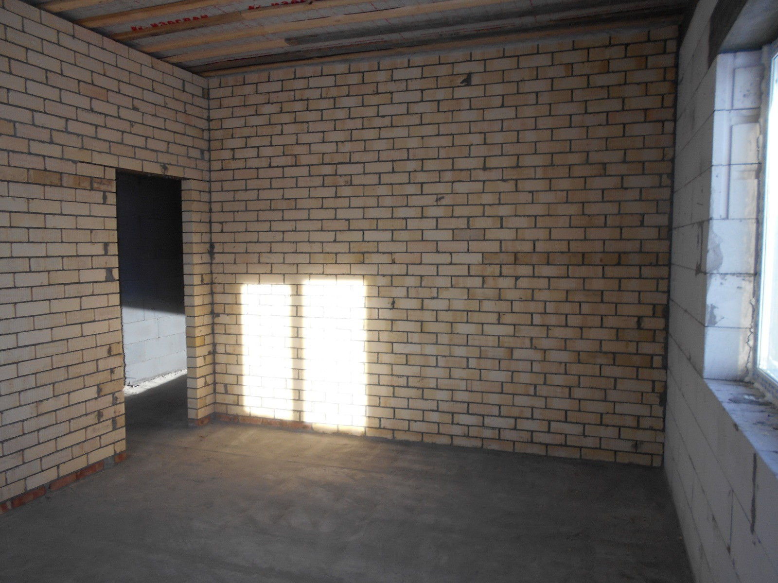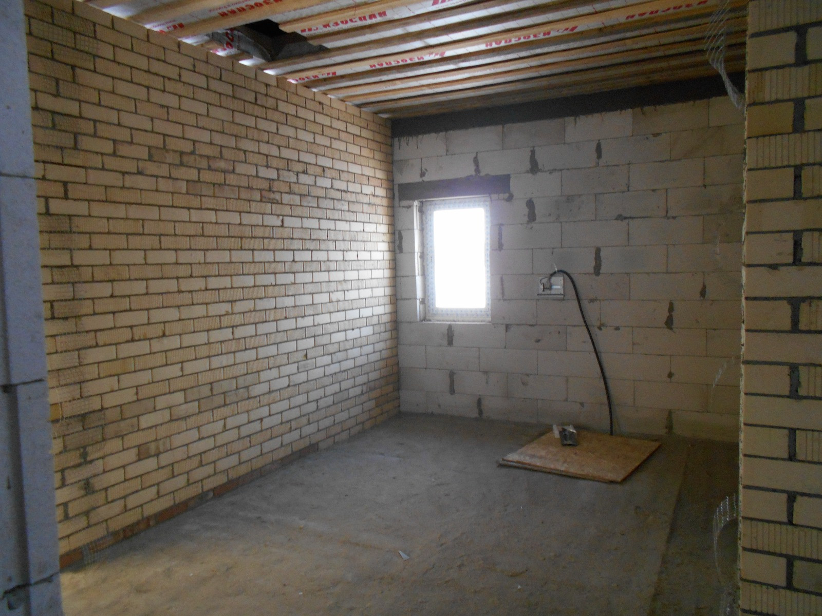 -стены дома выполнены из сибита плотностью D400( гораздо ниже теплопроводность по сравнению с керамзитоблоками, соответственно экономия на отоплении) плюс облицовочный кирпич( "Ликолор" г.Новосибирск)