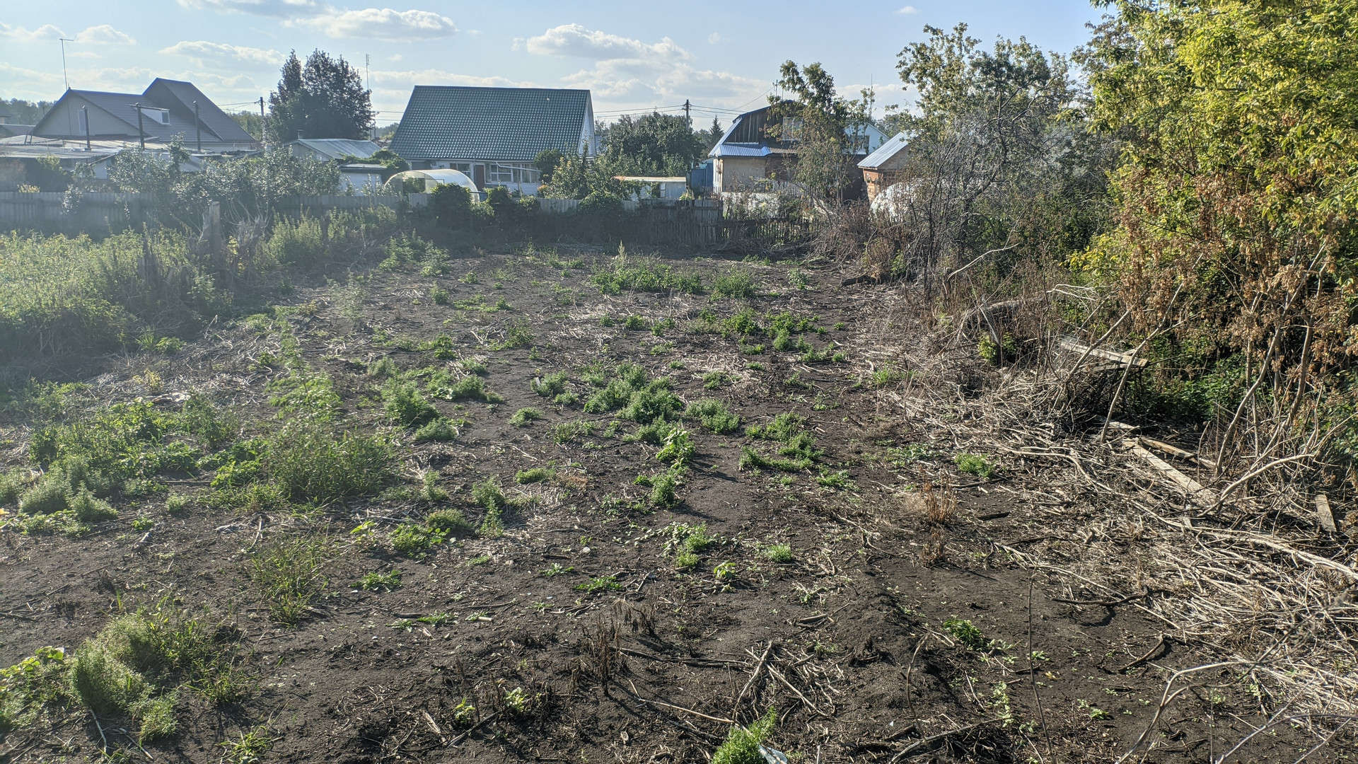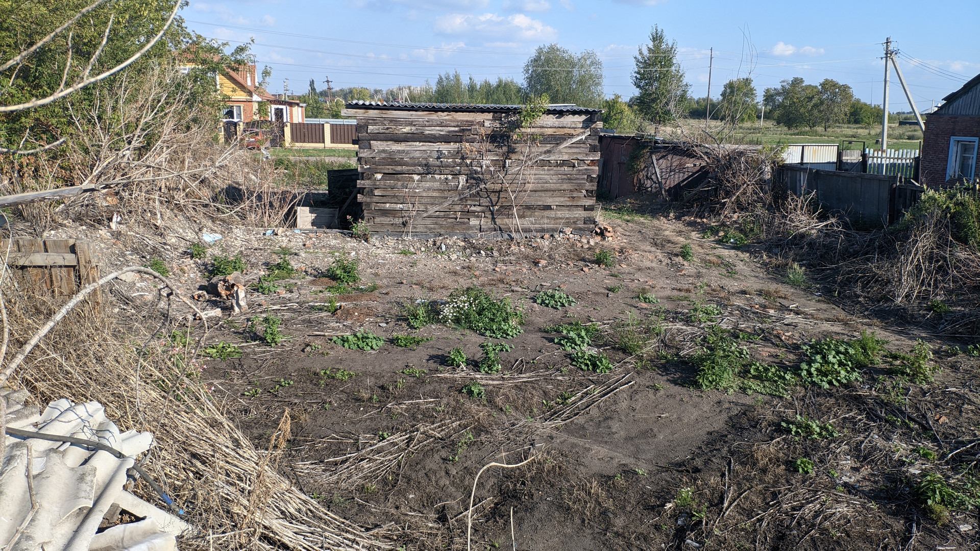 Участок чистился от поросли. На участке расположено строение, которое на время строительства можно использовать как сторожку/бытовку/склад.