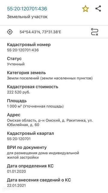 Кадастровый номер: 55:20:120701:436