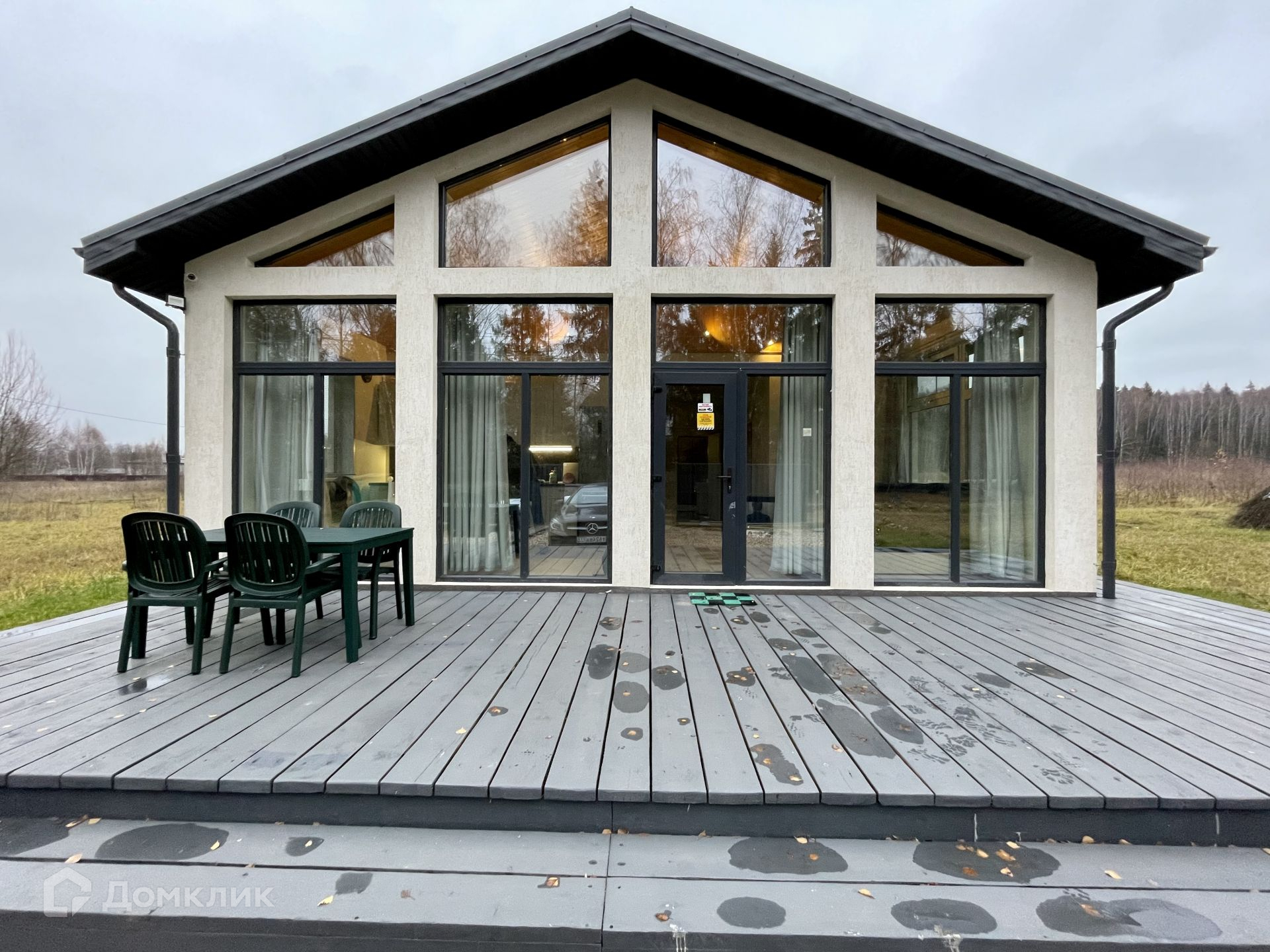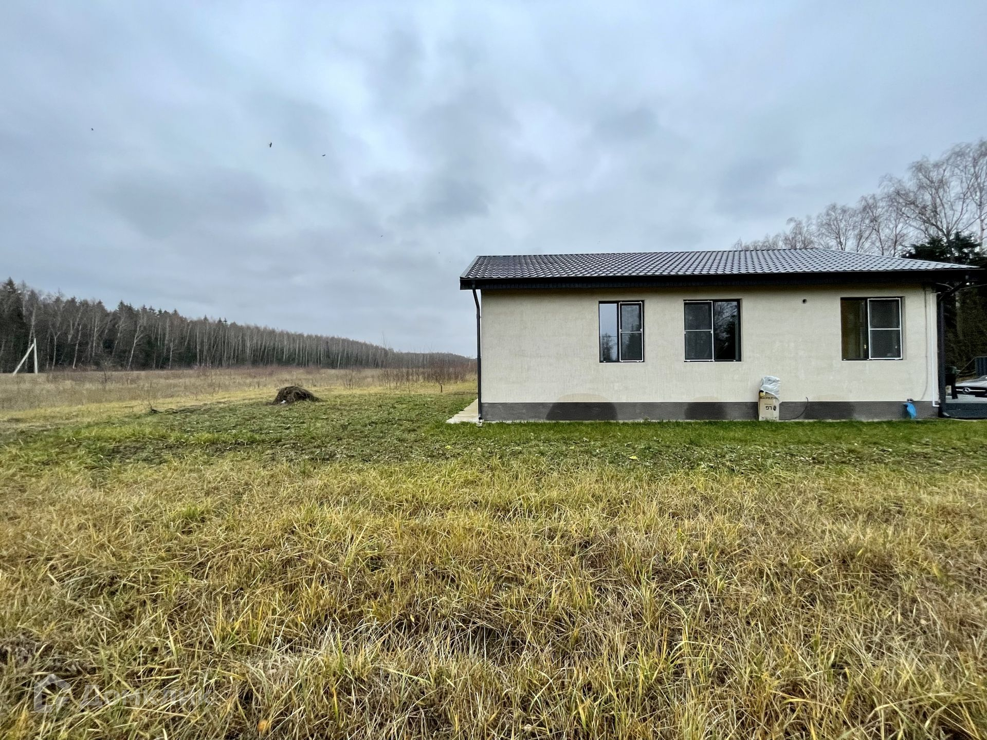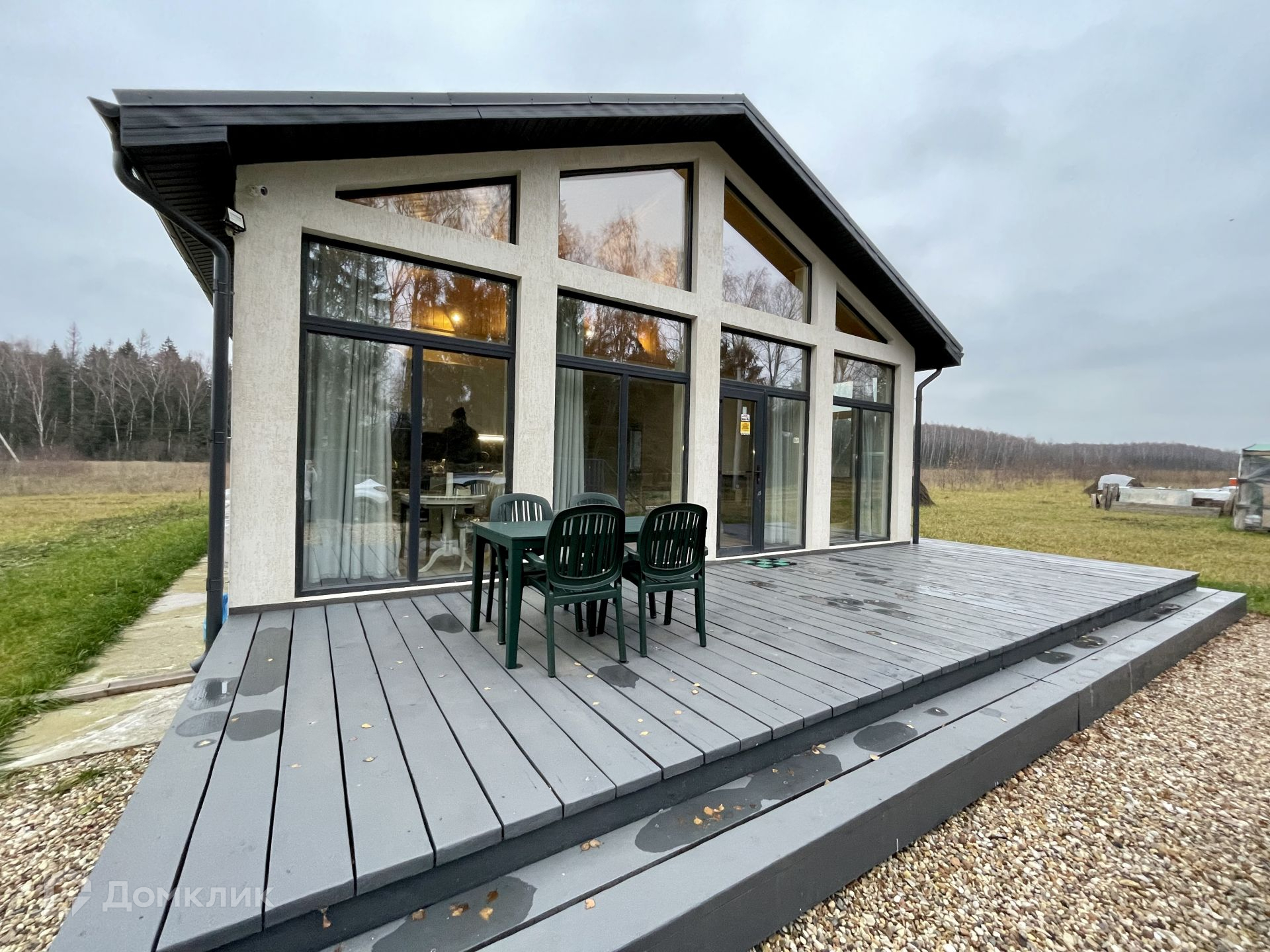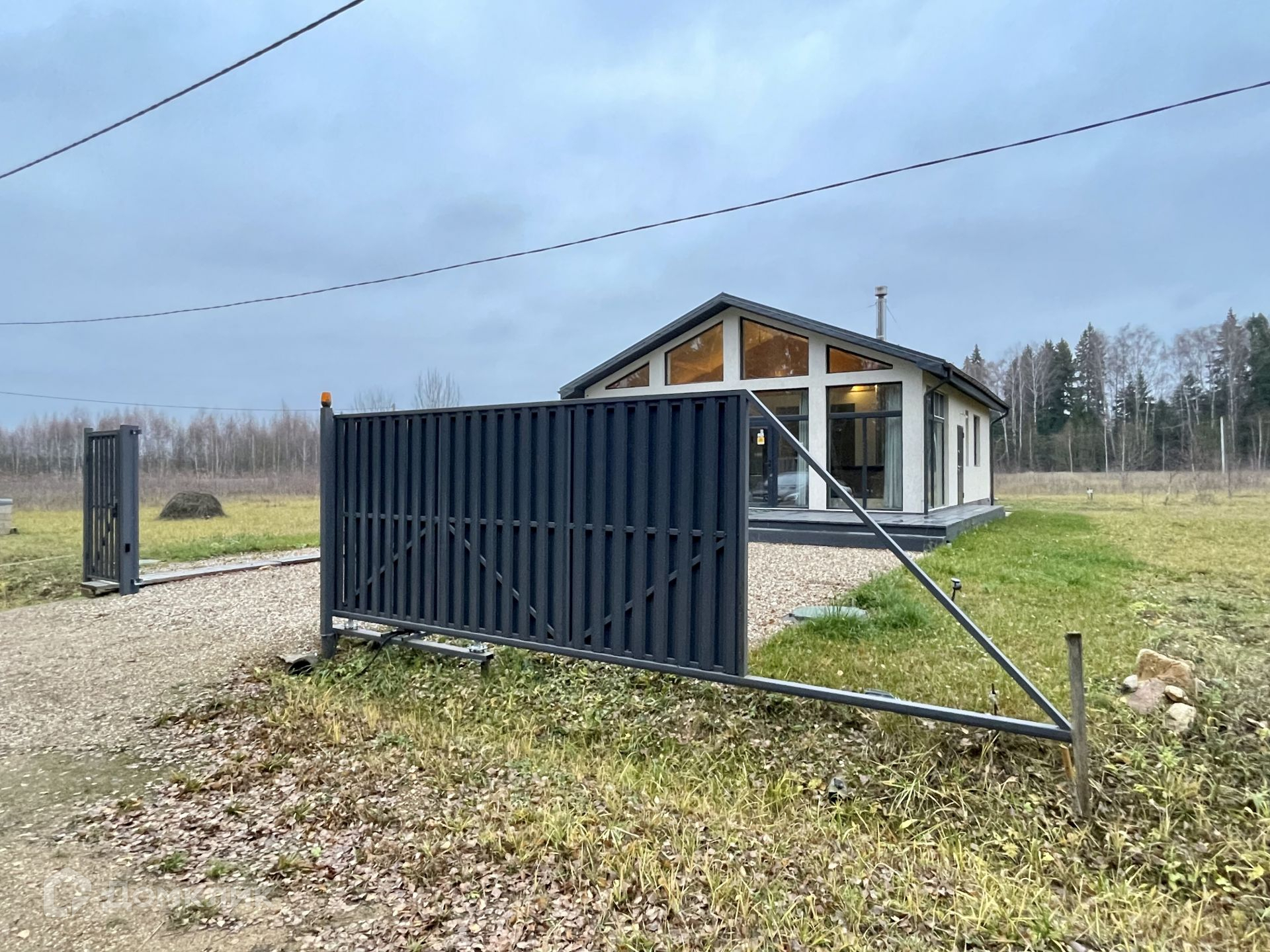 Планировка дома очень уютная и комфортная: вход в дом расположен с правой стороны дома, бойлерная+санузел, просторный холл с переходом с гостиную + кухня с панорамными окнами с выходом на террасу (30 кв.м), 2 просторные спальни, санузел.