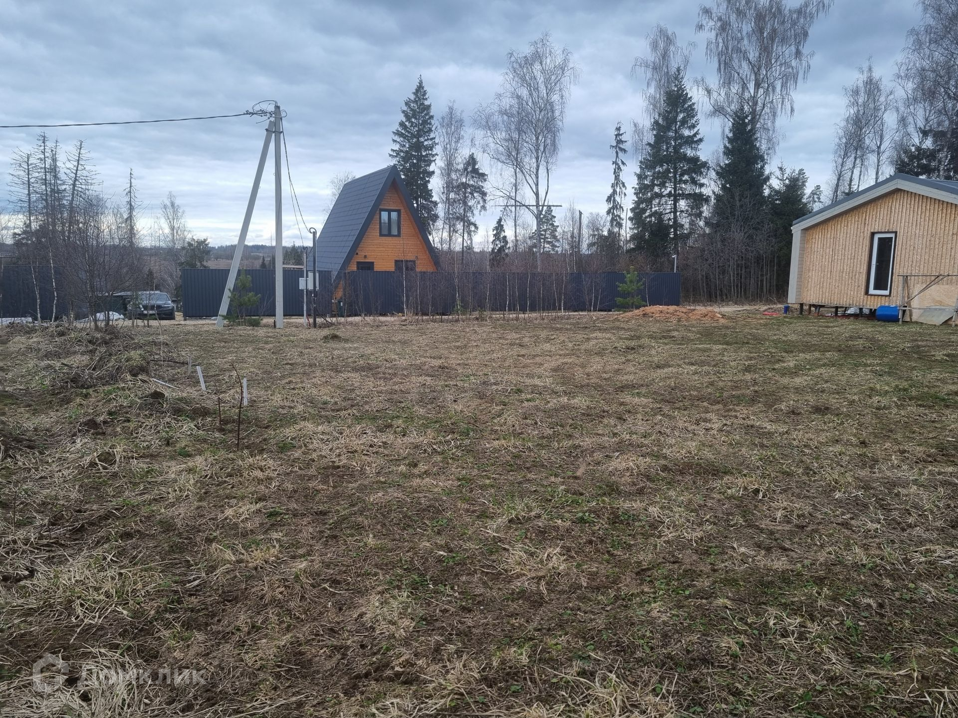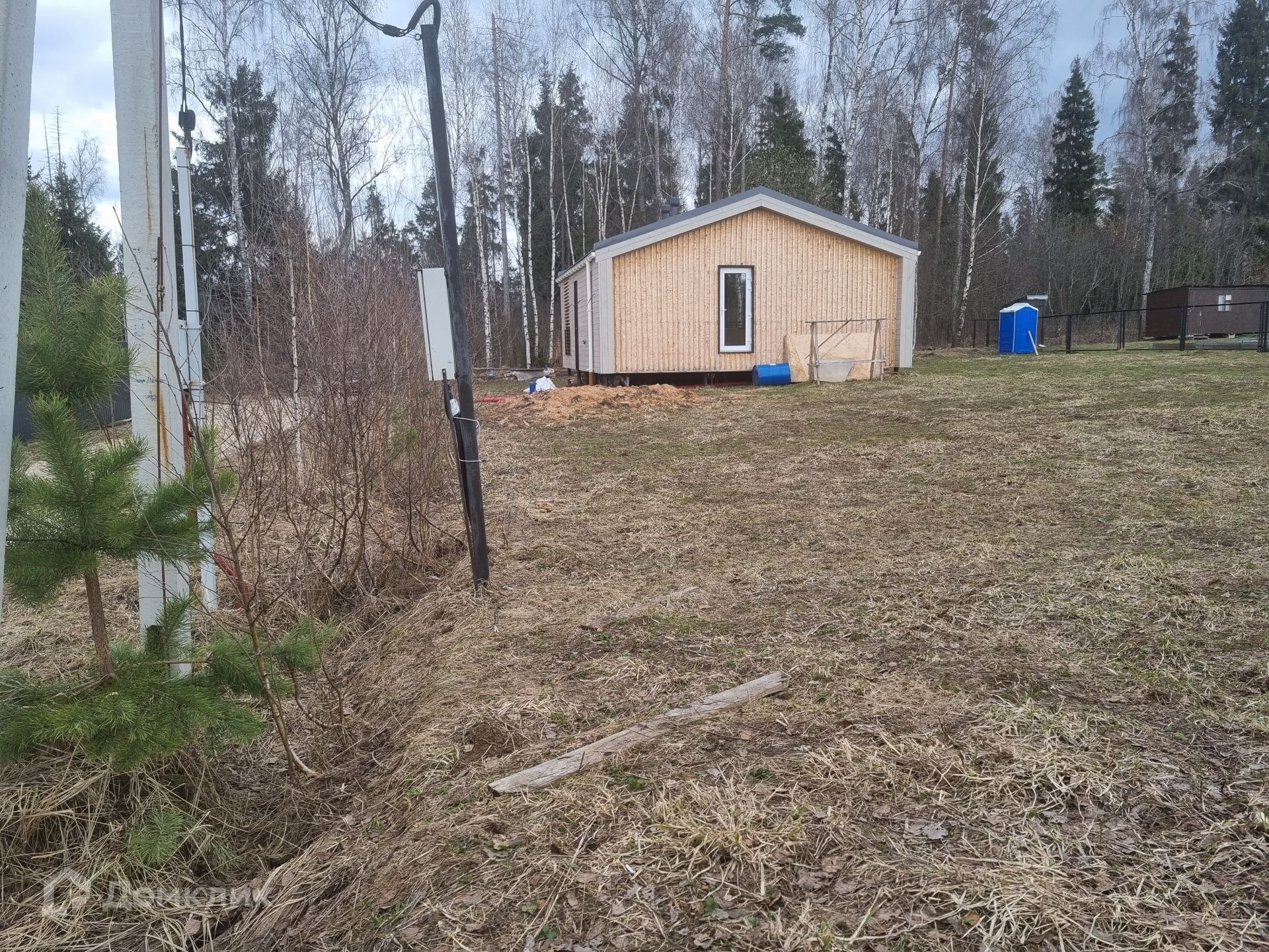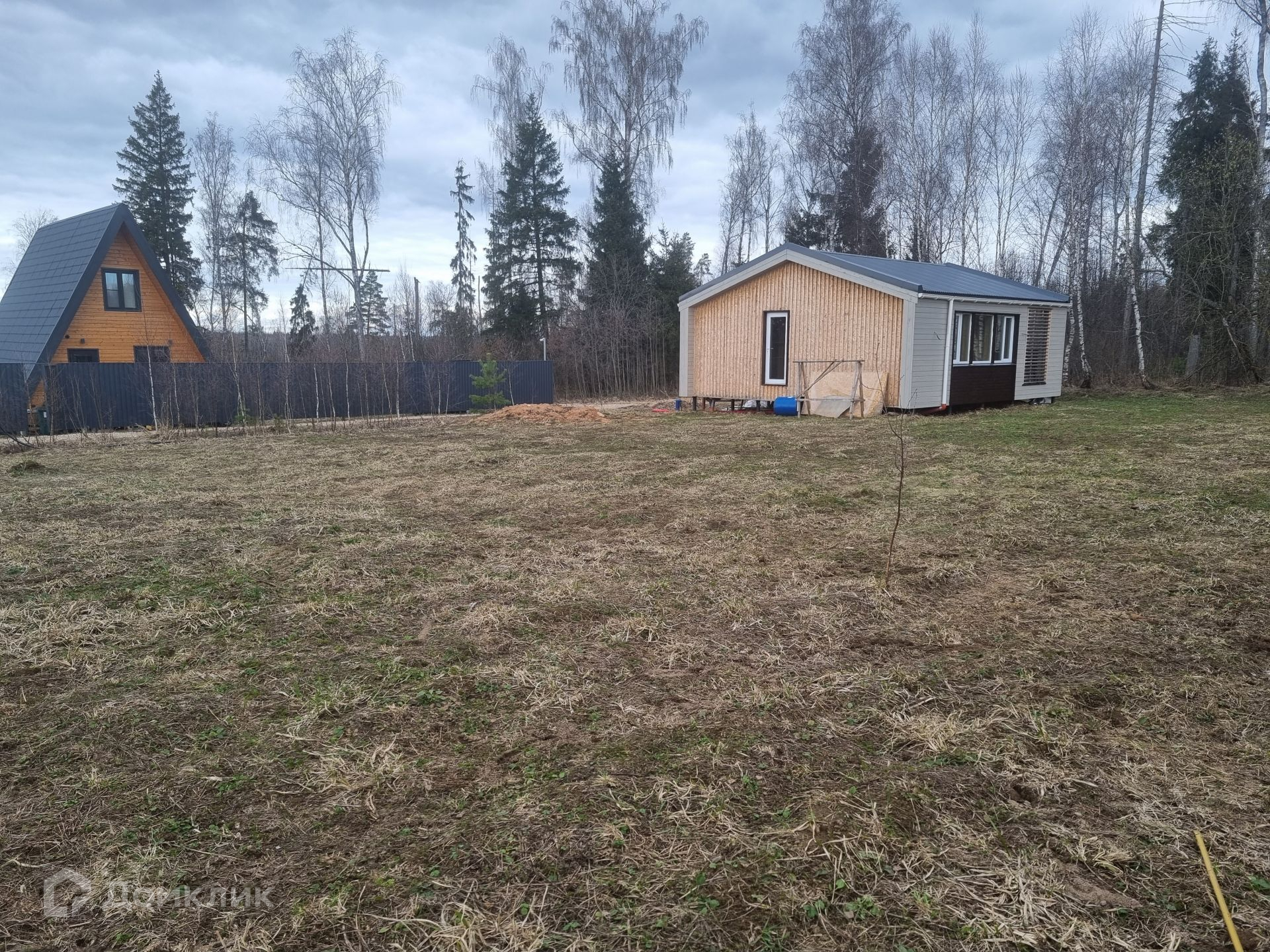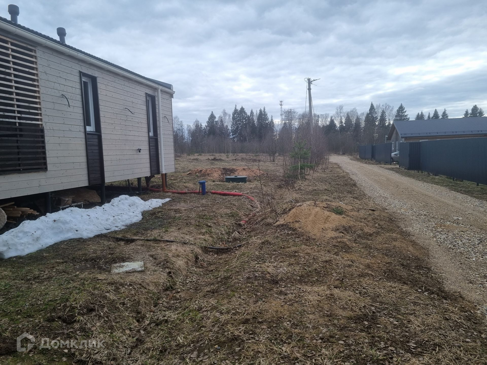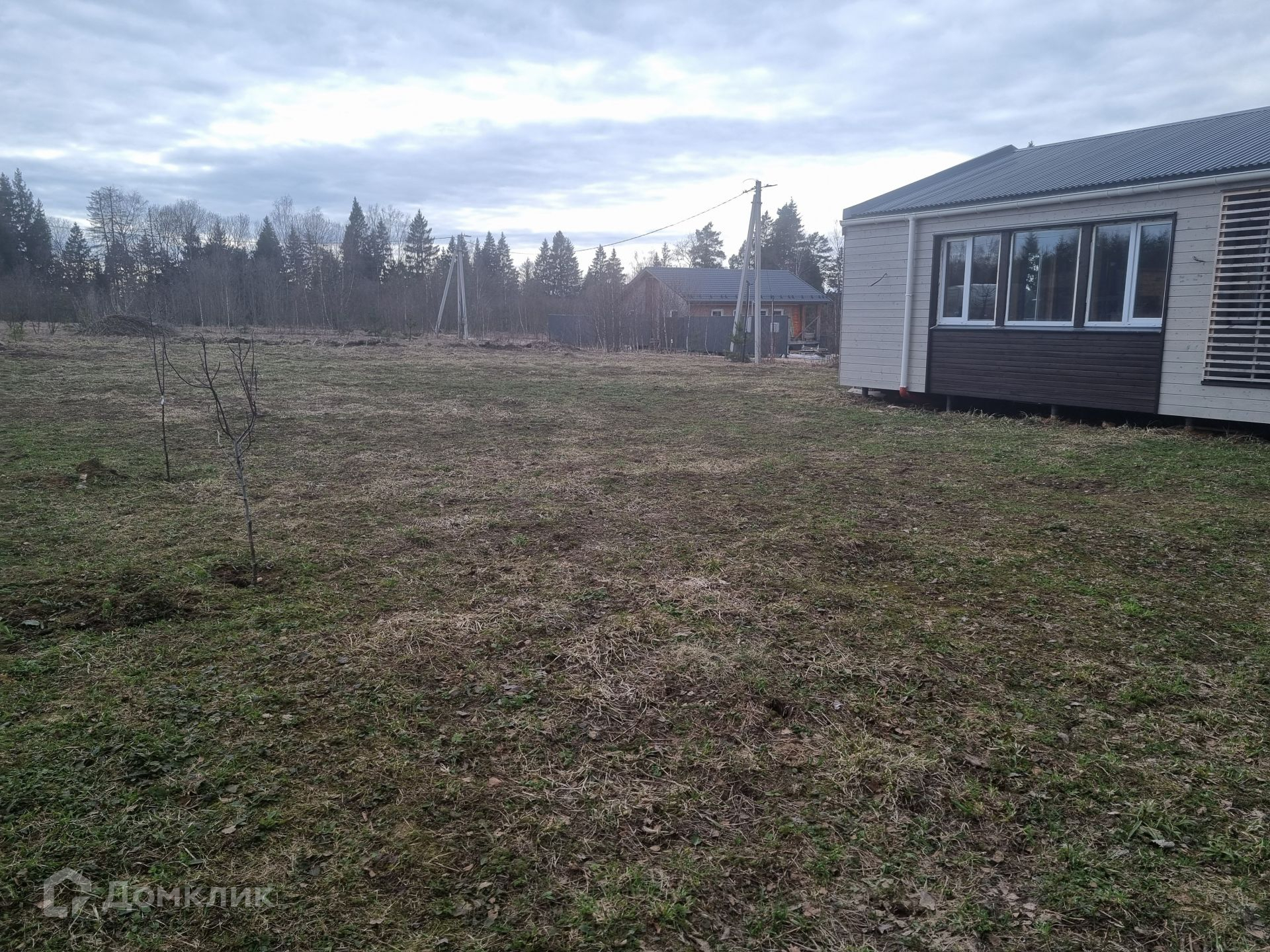 Участок правильной прямоугольной формы, ровный, сухой. Уже посажены плодовые деревья и кустарники: яблоня, груша, малина, смородина. Расположение дома на участке позволяет возвести еще одну постройку или пристроить к имеющемуся дому дополнительную комнату (опция предусмотрена у застройщика дома).