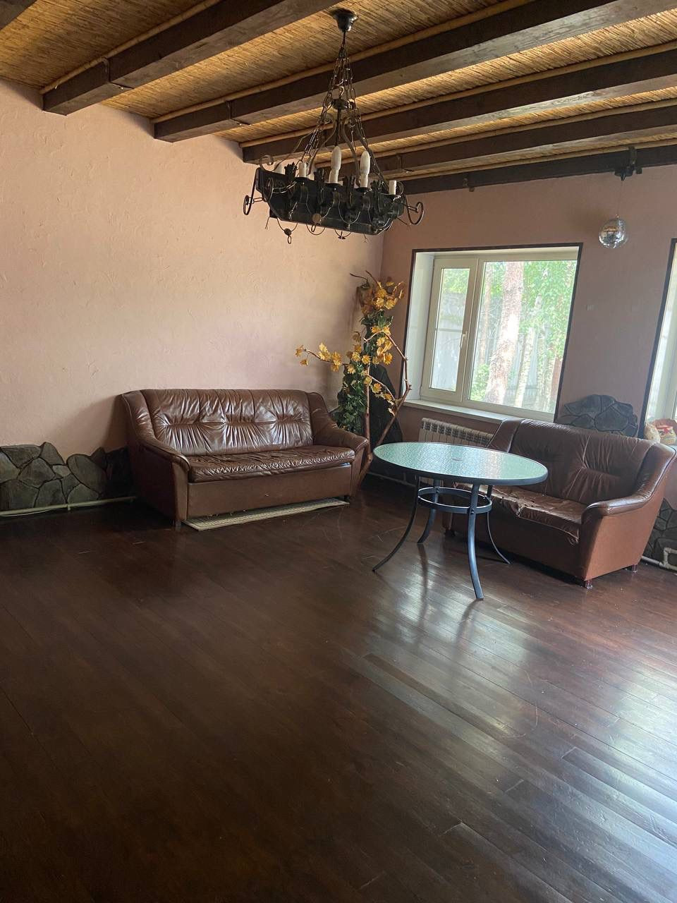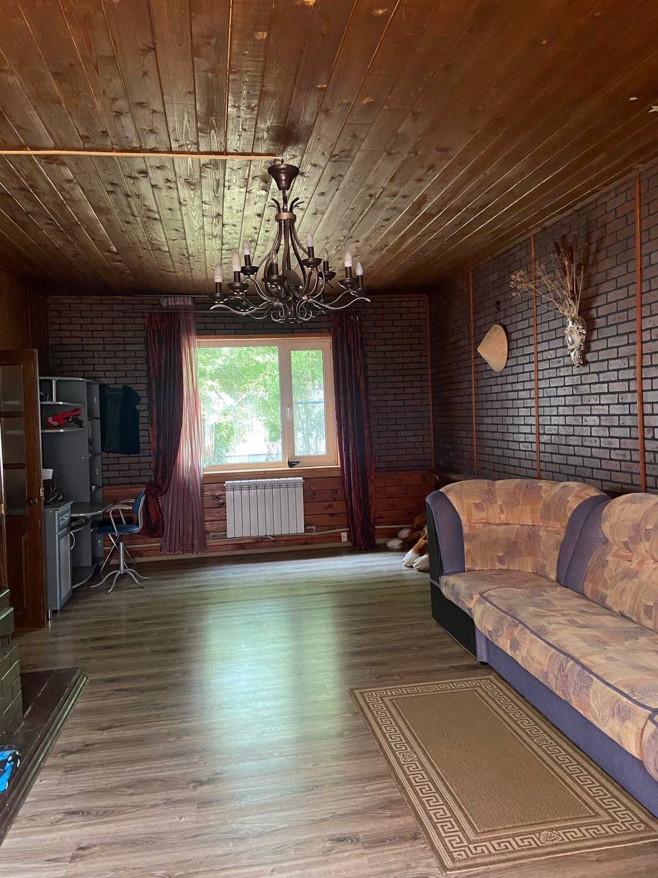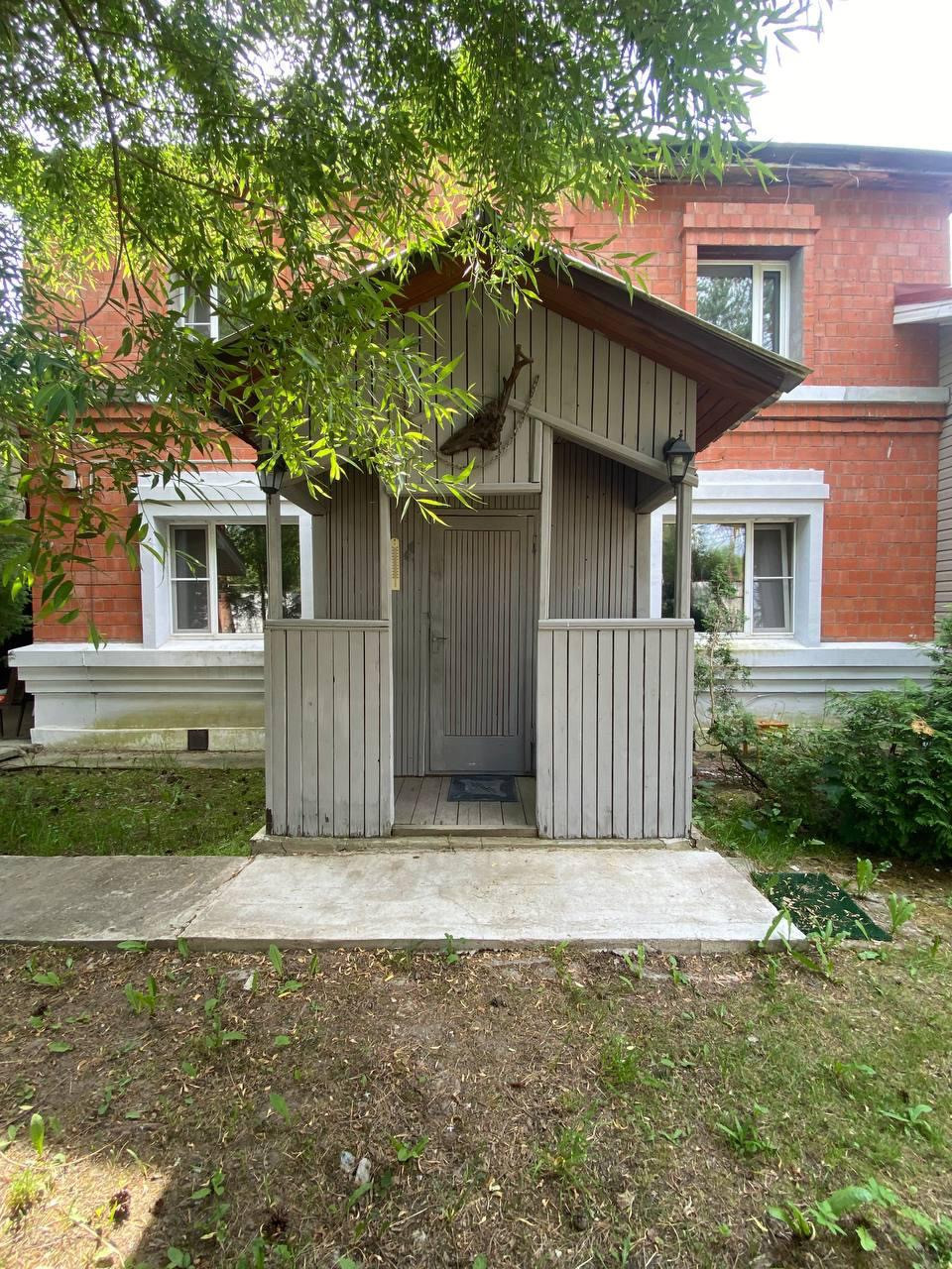 Дом построен из кирпича (кладка 1,5 кирпича), фундамент- бетонная плита. В доме 8 комнат, большая кухня-гостиная, котельная, 2 санузла,пристроен гараж. Отопление-котел, также есть камин и печь. Скважина 120 метров.На участке рубленая баня (6*8) с комнатой отдыха, гостевой дом, открытый бассейн, в дальней части участка пруд в тени сосен.