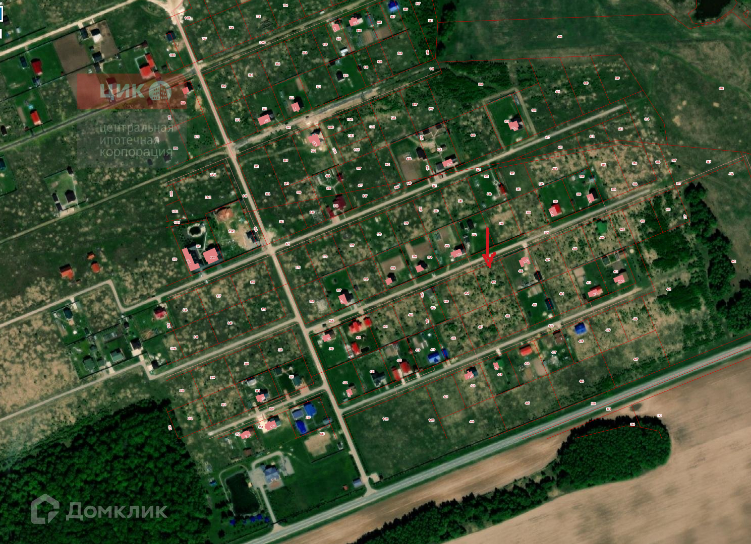 Участок ровной формы (40х50 м), расположен в начале поселка на ул. Есенинская.  Газ, свет и вода по границе участка. Асфальтированная дорога.