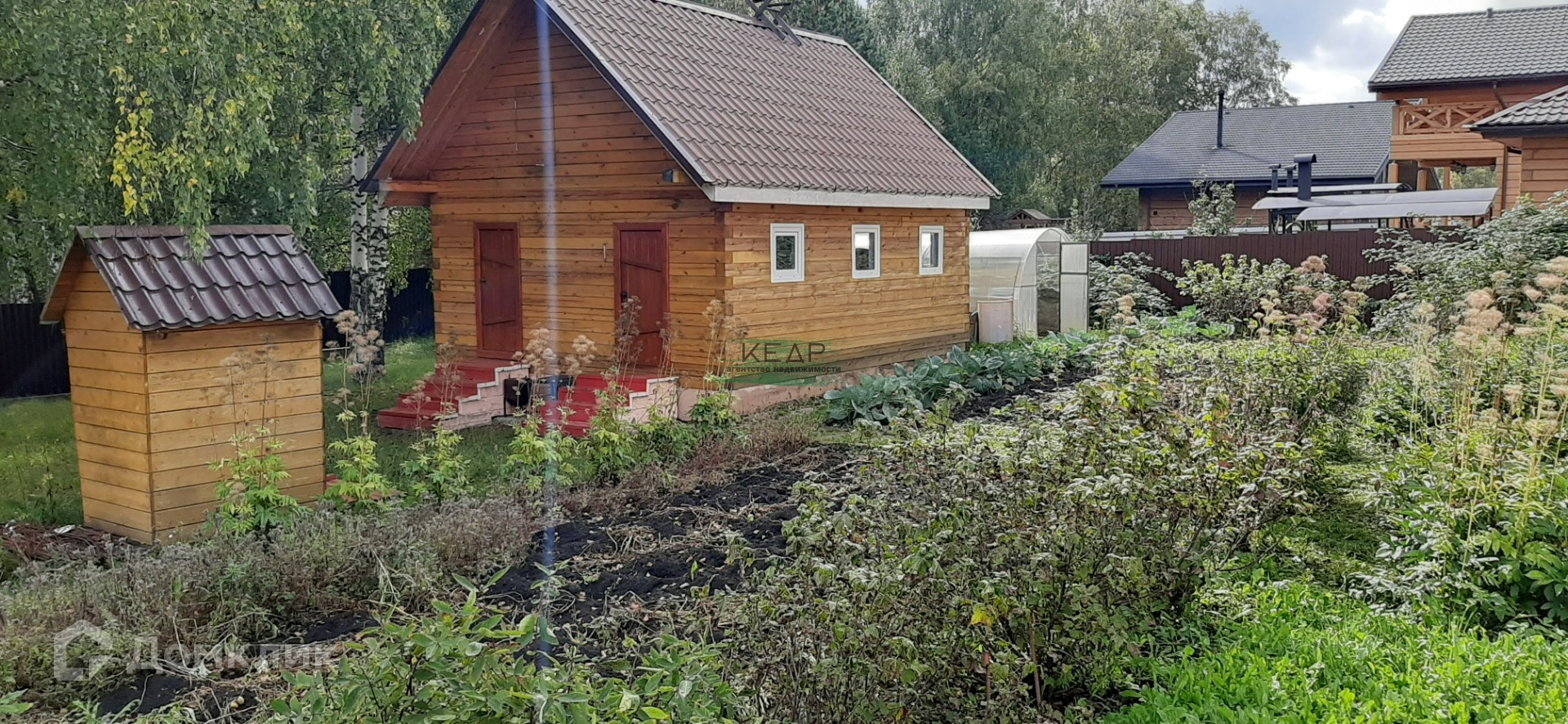 Есть плодовые и декоративные растения. Имеется погреб. Сам поселок небольшой около 40 собственников - есть уборка мусора, освещение и обслуживание дорог, общая детская и спортивная площадки. Рядом от поселка пруд и озеро, охотничьи угодья.