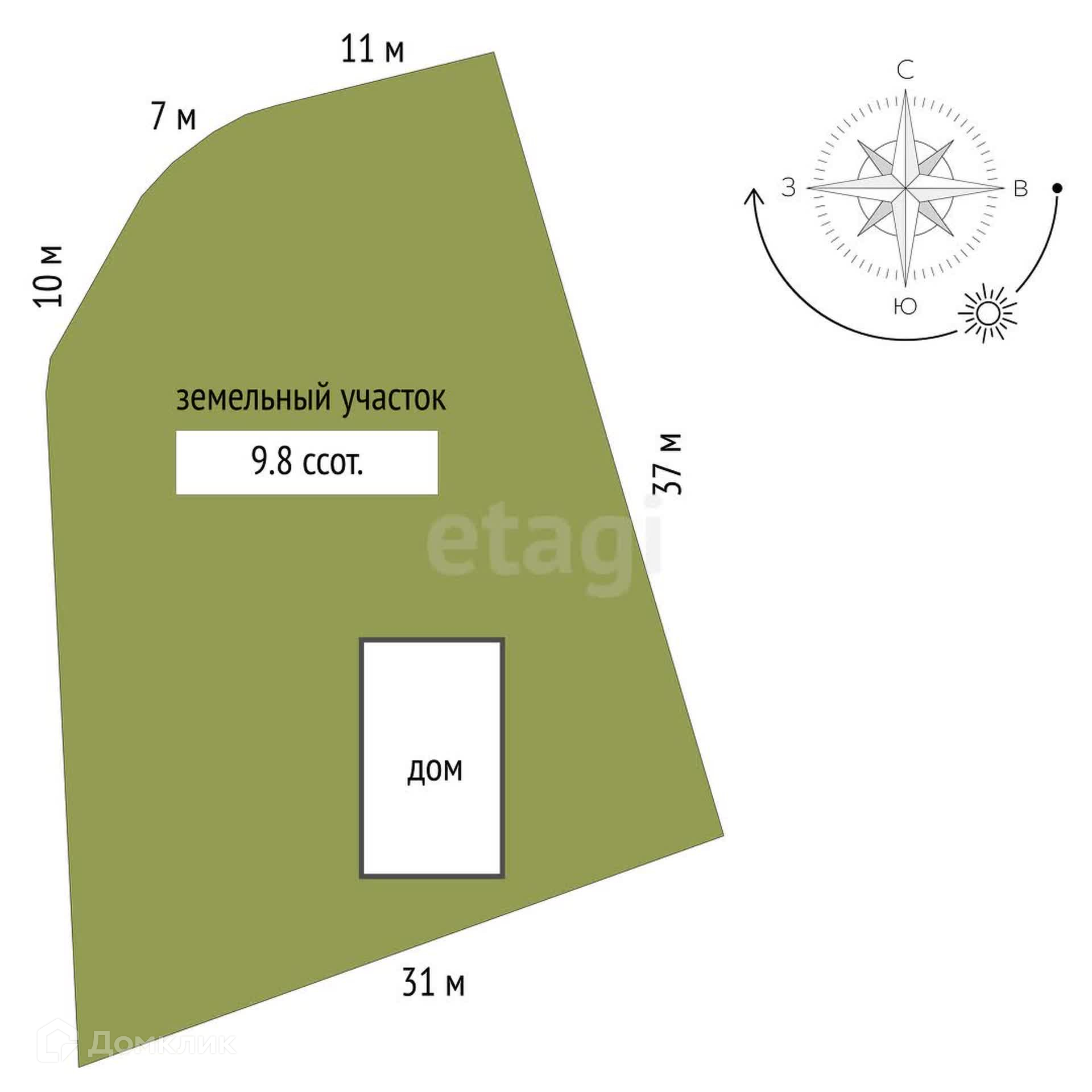 Площадь участка 9.8 сот.