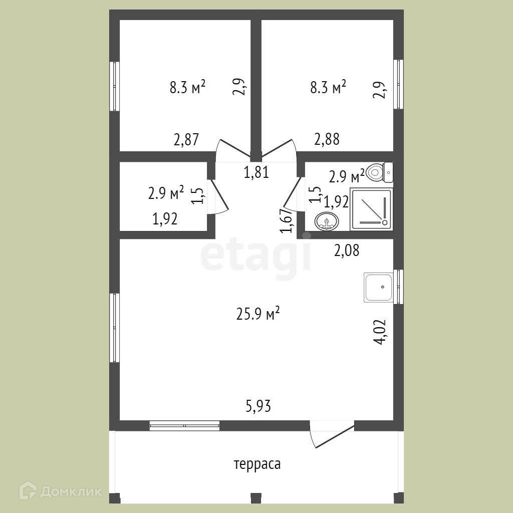 Общая площадь 59 м2