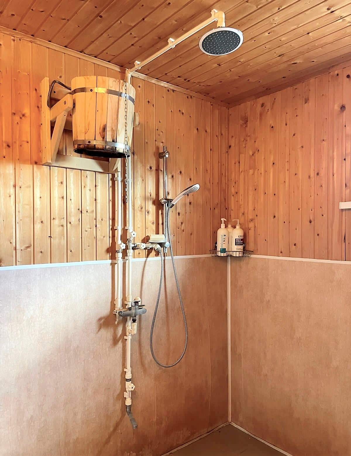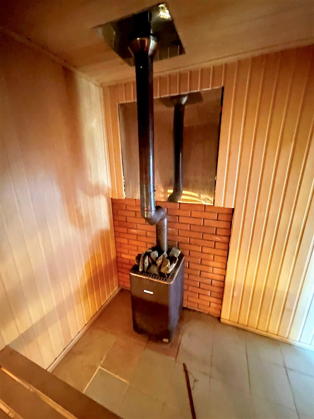 •    - Двухэтажная новая баня из бруса S=76,4кв.м с большой открытой террасой