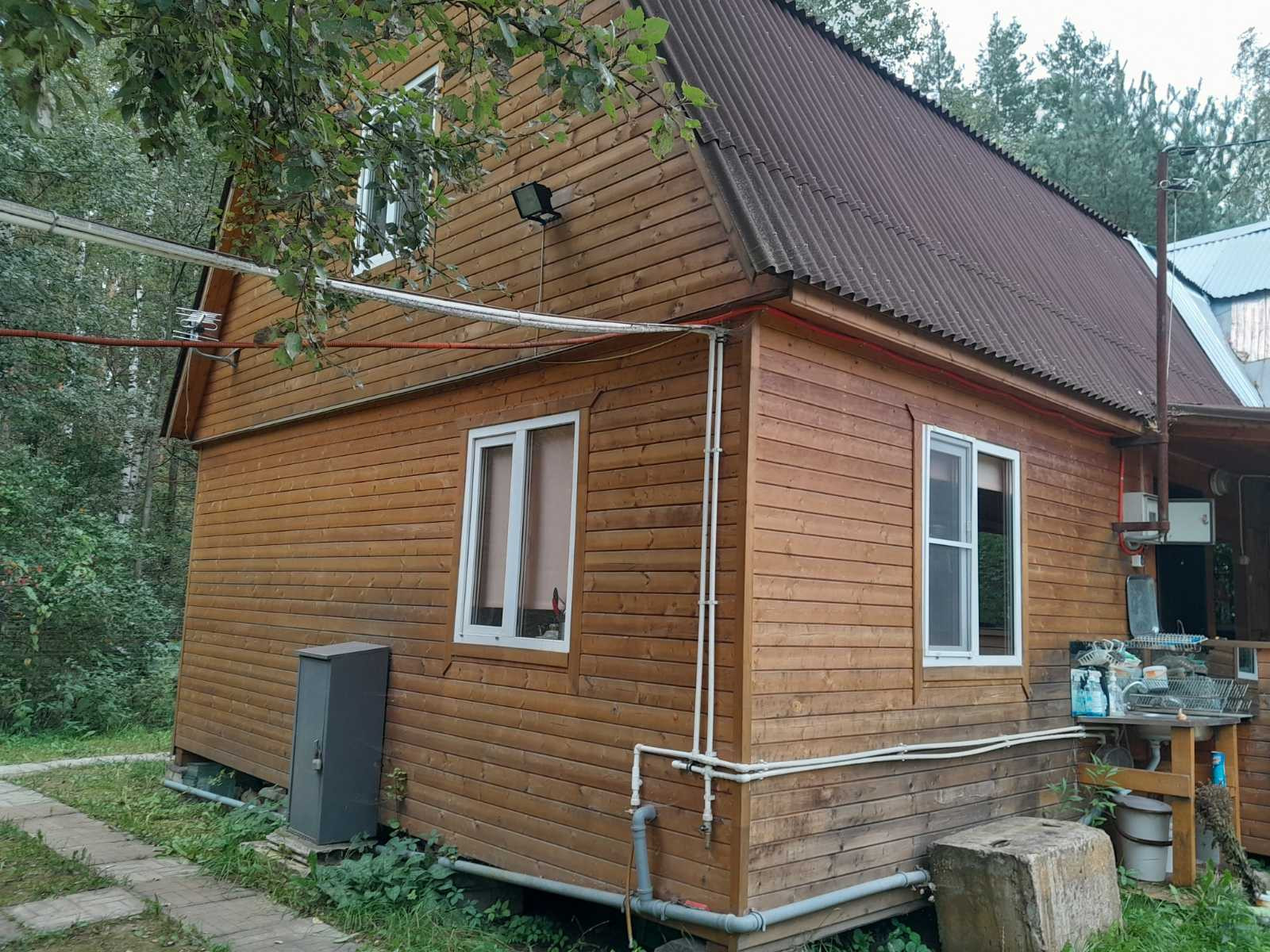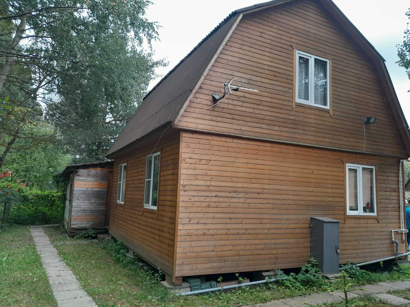 Продается дача в СНТ Конобеево (ж/д ст.Конобеево). Участок 9 соток, ровный, правильной формы, сухой, ухоженный, огорожен. Дом двухэтажный деревянный S-97 кв.м. Есть баня 3*6м, холодная и горячая вода, душевая кабина. Есть беседка. Много садовых насаждений.  10минут пешком до автобусной остановки (10мин транспортом до ж/д станции, 1ч10мин до м.Выхино). Рядом лес.