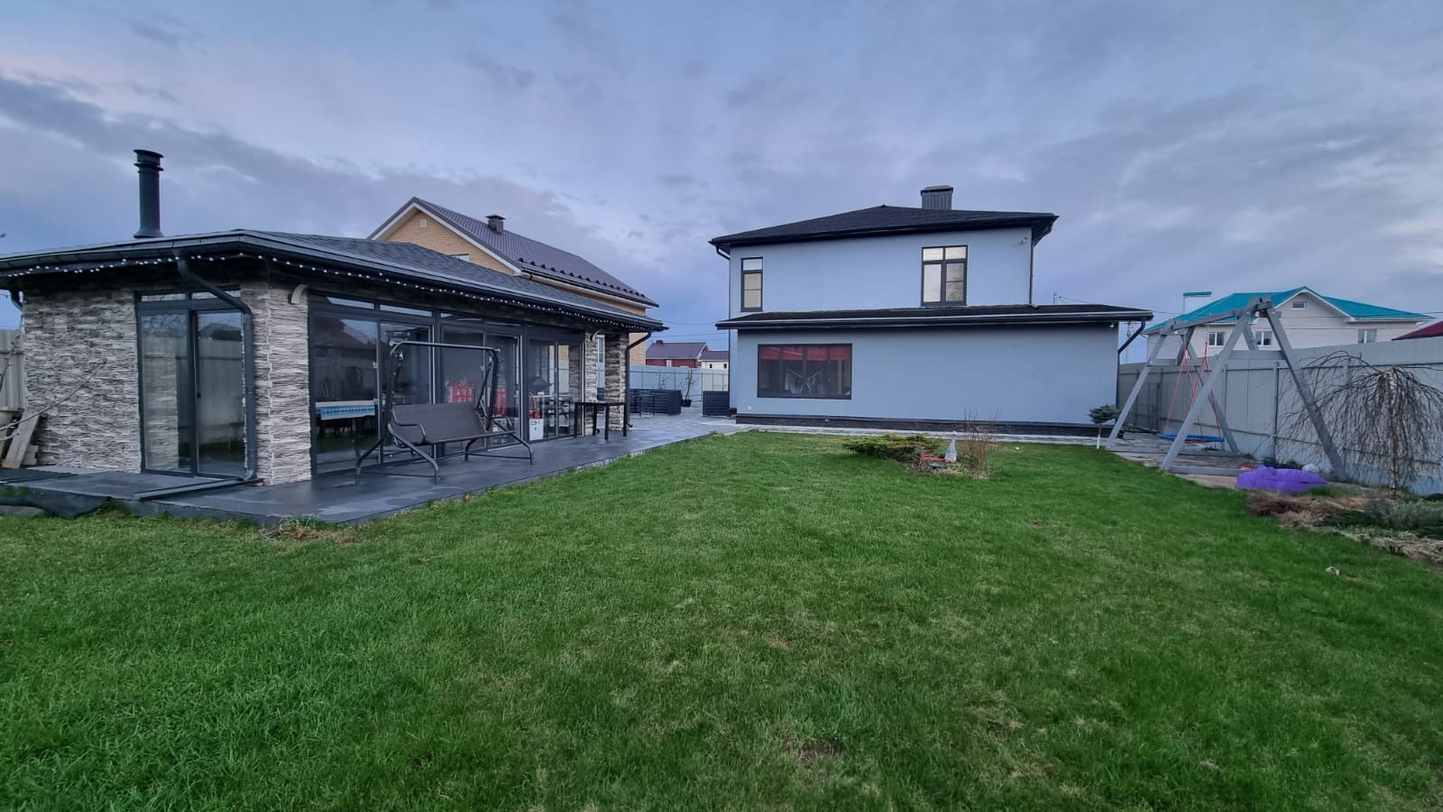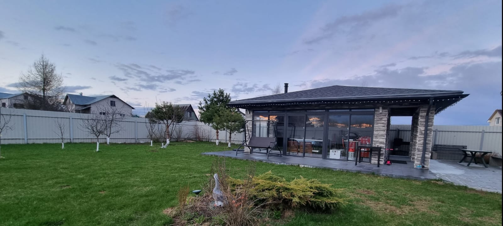 Все постройки на участке сделаны в одинаковом современном стиле