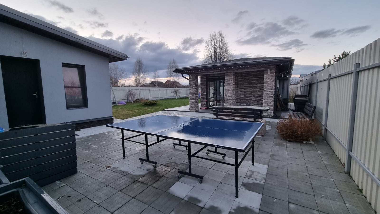 На территории расположен отдельно стоящий каминный зал, площадью 25 кв.м. с открытой террасой, 2019 года постройки. За каминным залом смонтирована индивидуальная система хранения.