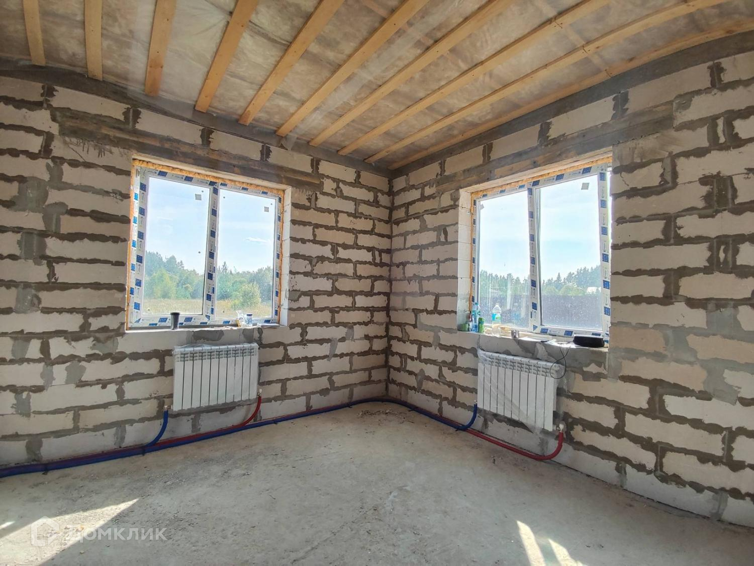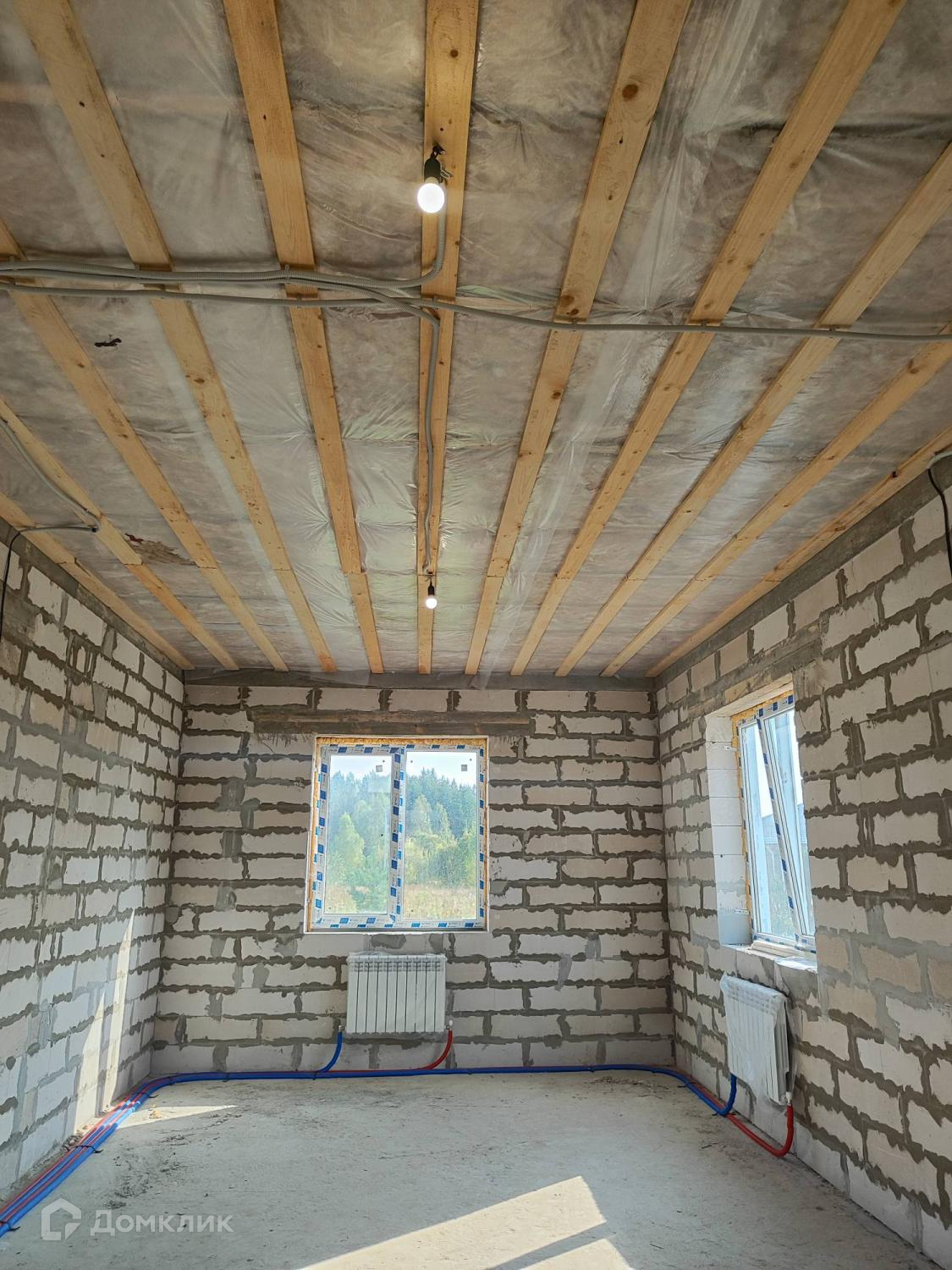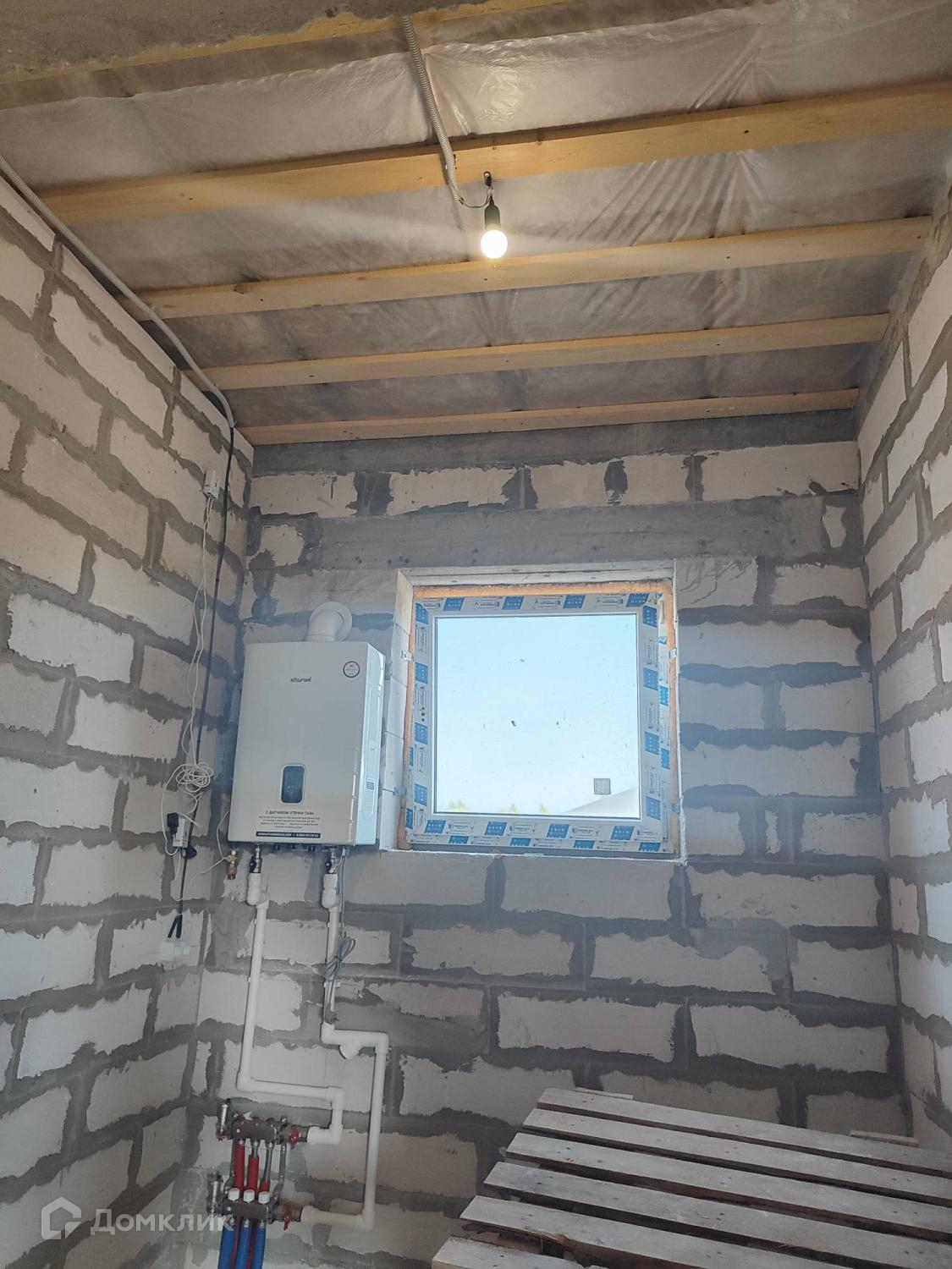 Проведенна электрика в дом( ввод и лампочка в каждое помещение), установлен двухконтурный газовый котел, установлены радиаторы.