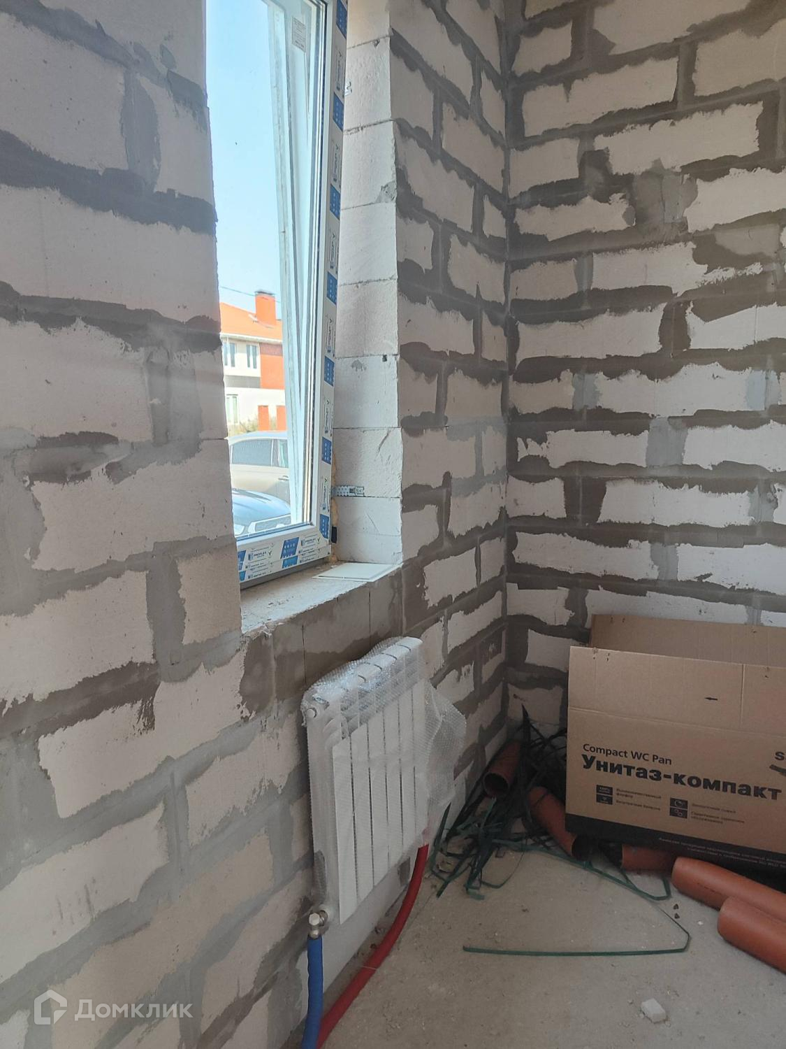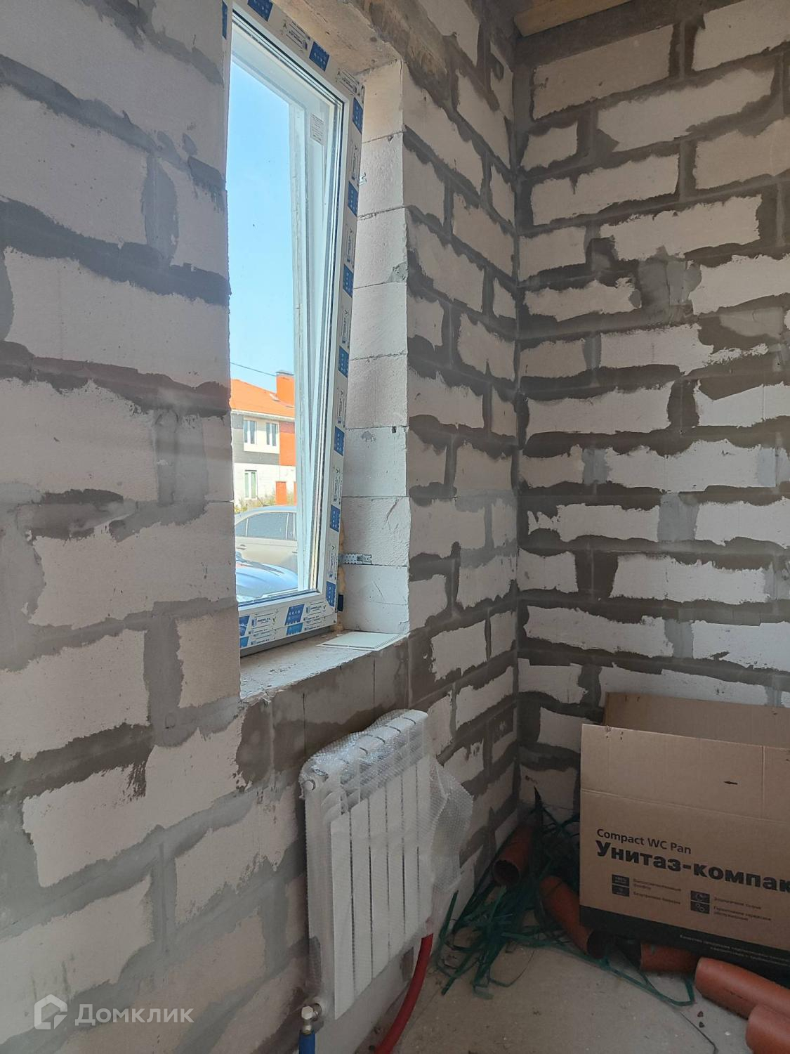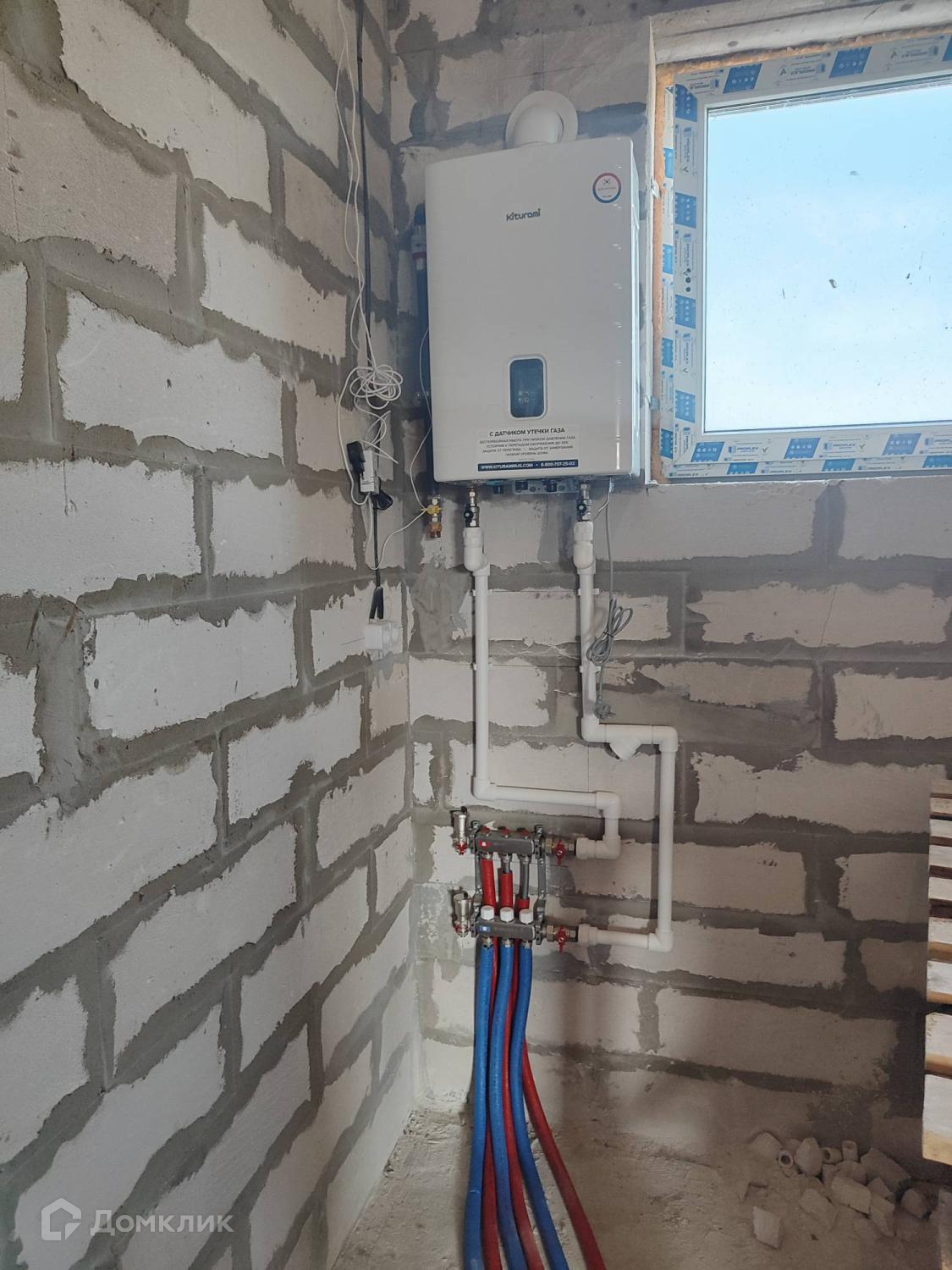 Проведенна электрика в дом( ввод и лампочка в каждое помещение), установлен двухконтурный газовый котел, установлены радиаторы.