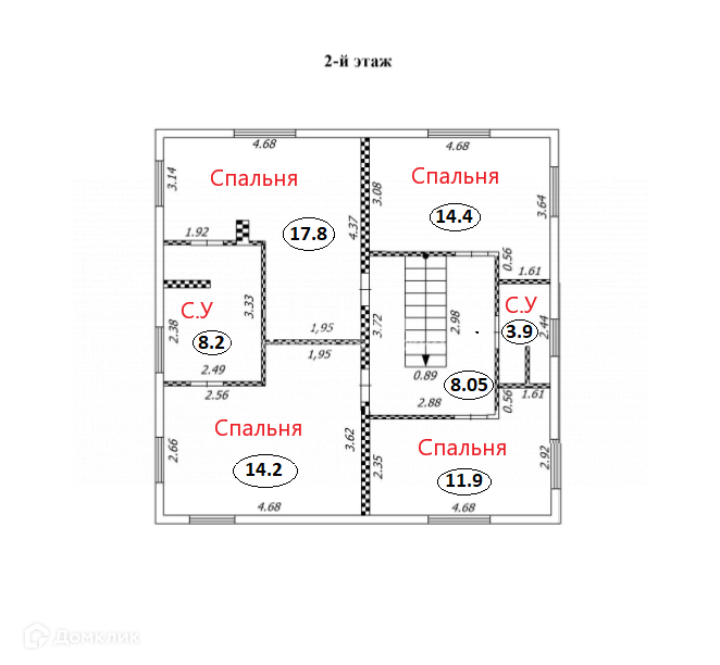 Спальни: 17.8+14.4+14.2+11.9 кв. м