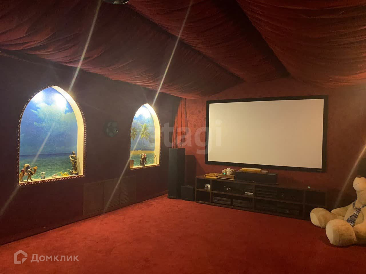 В вашем распоряжении 17 комнат, 6 санузлов, хамам и даже кинотеатр с усиленными колонками, которые обеспечивают потрясающее звучание.