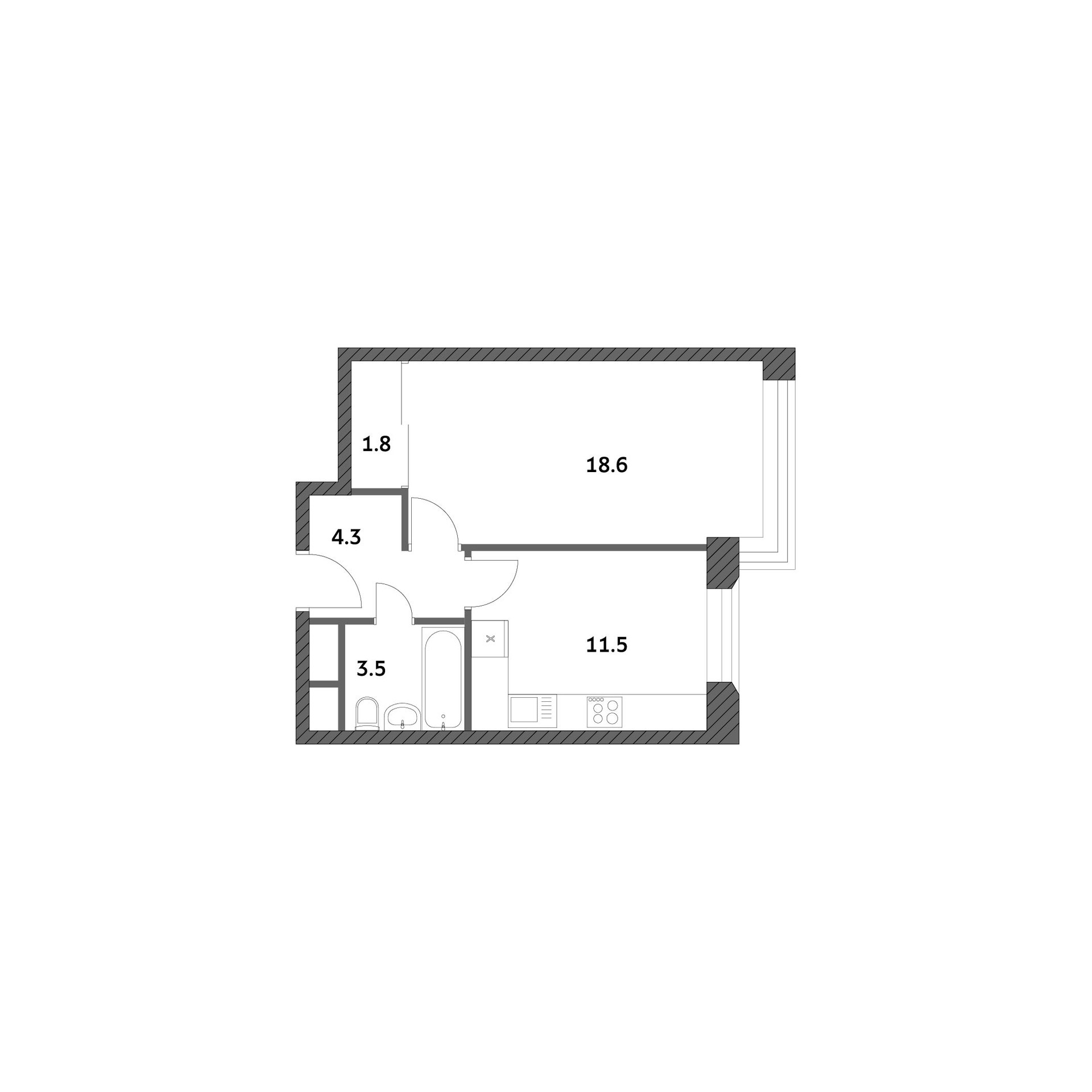 Квартира расположена на 11 этаже, что позволяет наслаждаться прекрасным видом из окон на улицу. Жилая площадь составляет 18.6 квадратных метров, а кухня – 11.5 квадратных метров. В квартире выполнен предчистовой ремонт. Санузел совмещённый.