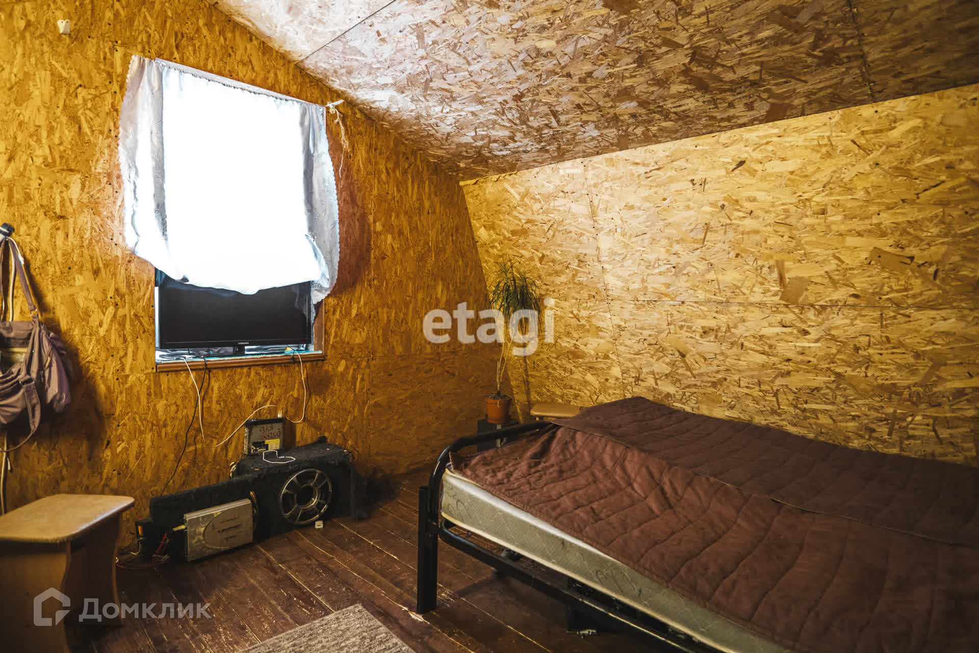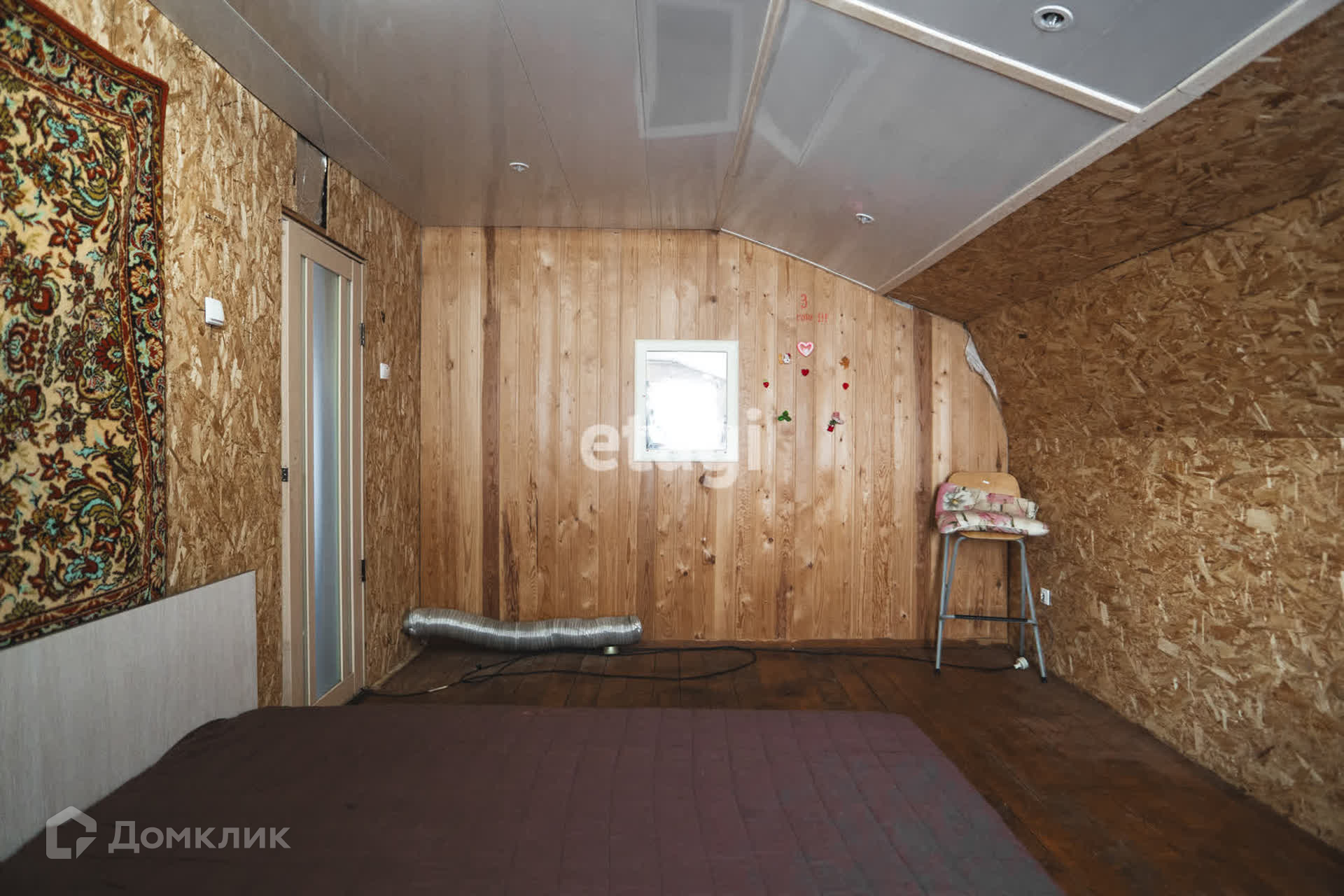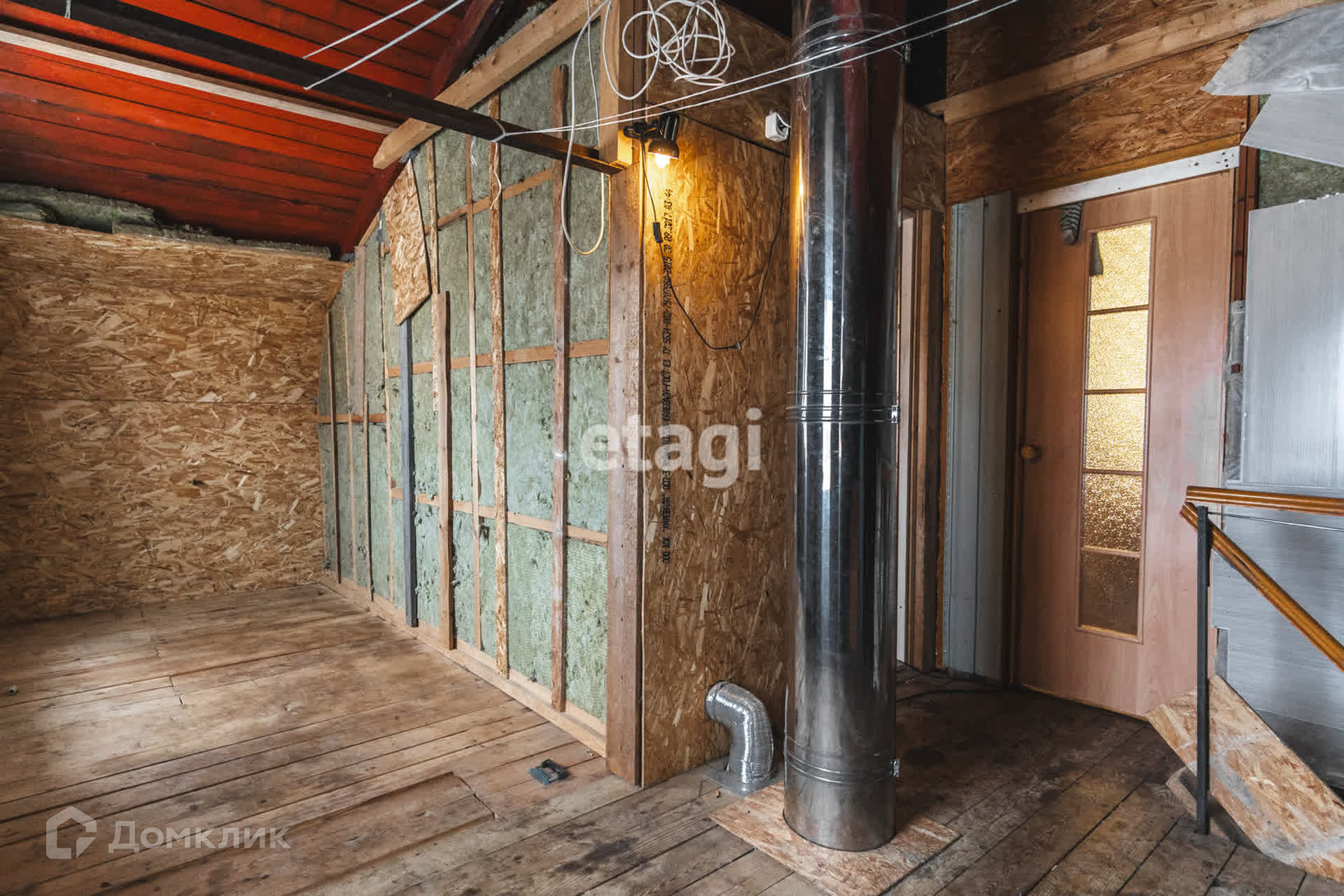 Первый этаж требует ремонта, второй подходит для круглогодичного проживания. На первом этаже расположена большая гостиная с камином, кухня и туалет, на втором этаже две комнаты, при необходимости можно сделать третью. Дом отапливается от камина, сделана скважина и септик. На участке есть баня и сарай.