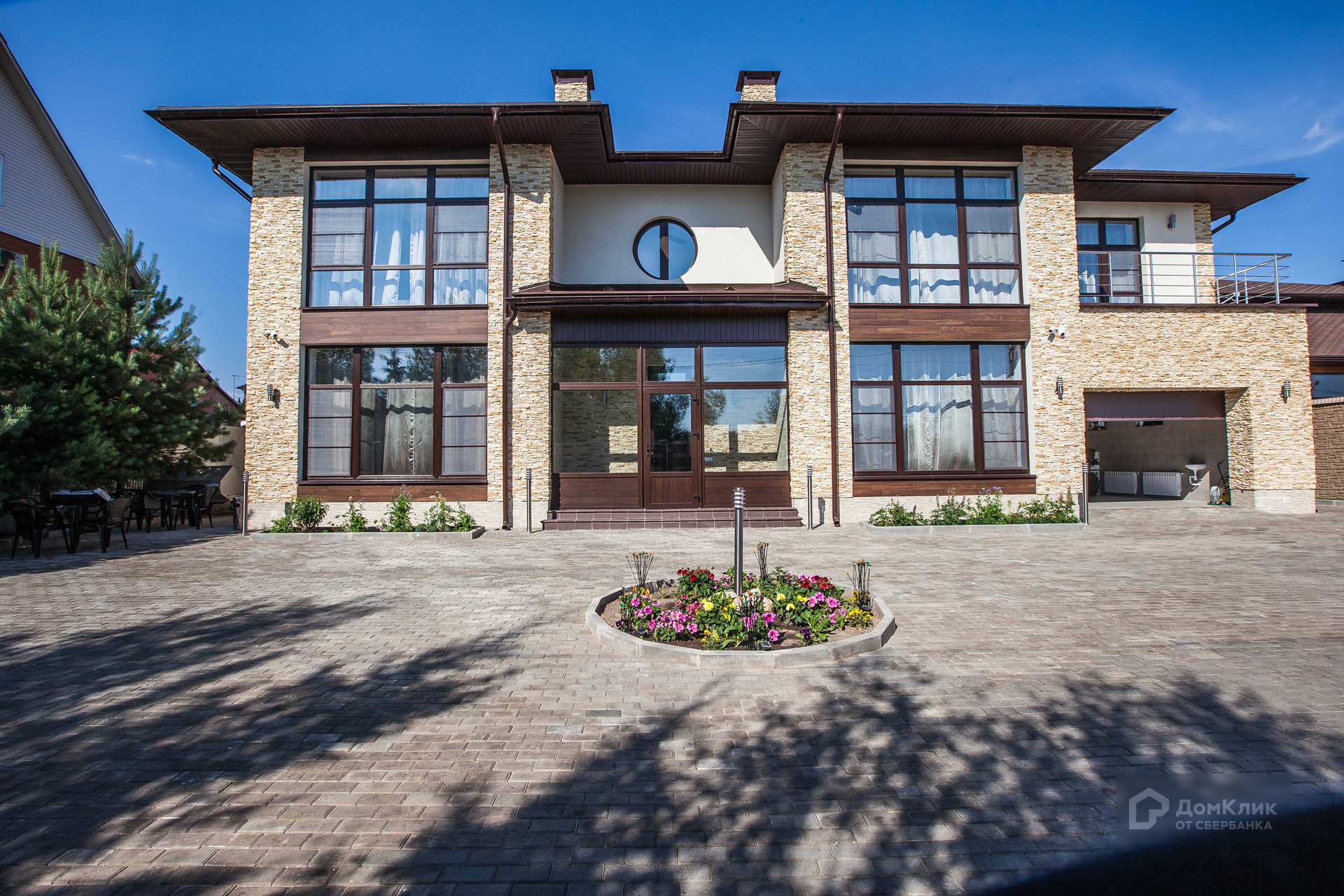 На участке выполнен ландшафтный дизайн, оборудованы летняя и зимняя беседки, просторная парковка