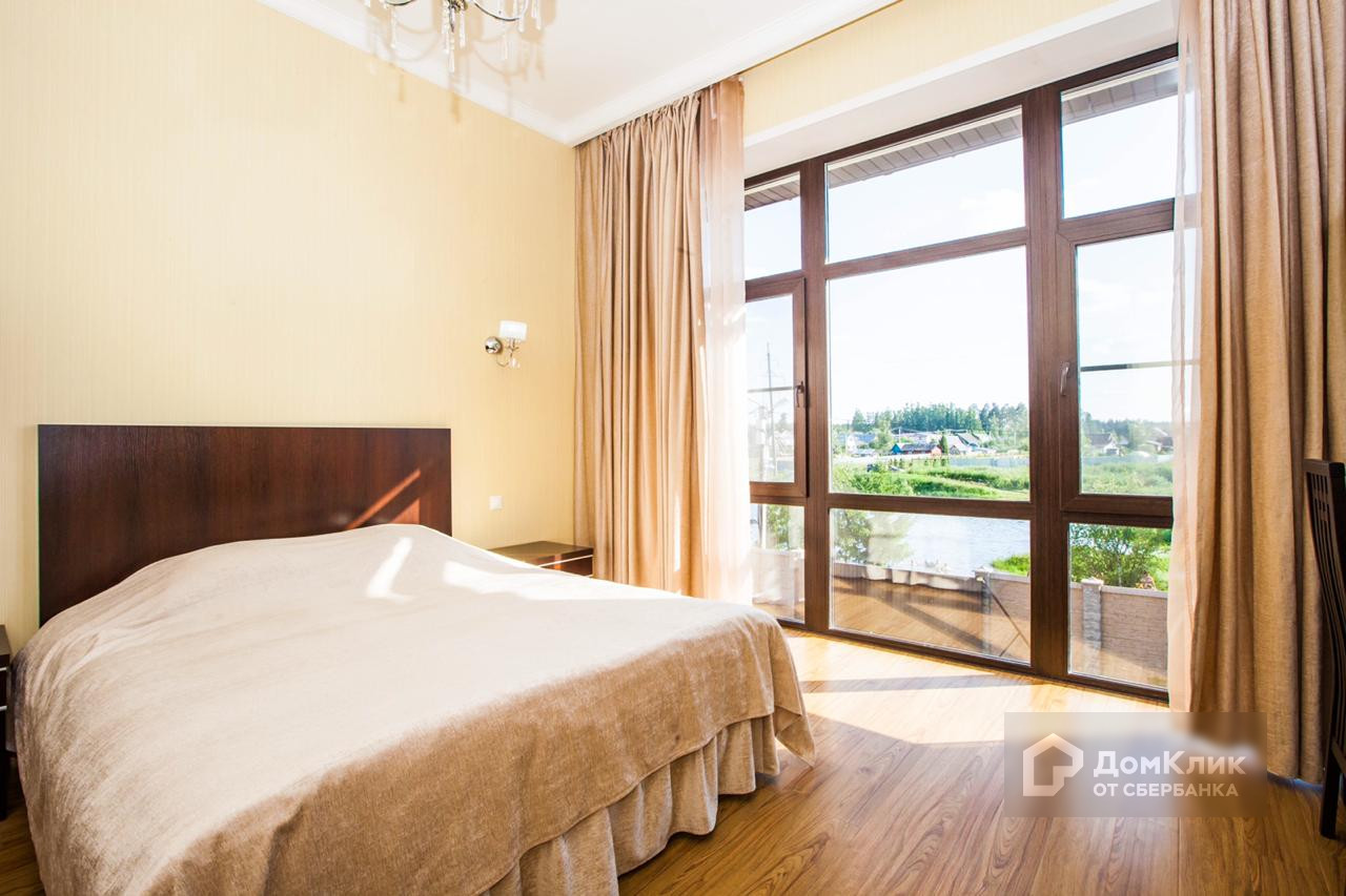 Комфортная и просторная планировка, отделка в светлых тонах. 1 этаж: гостиная с камином на дровах и домашним кинотеатром, кухня и столовая с выходом на застекленную террасу, столовая, кладовая при кухне, двухсветный холл, 2 спальни с собственными санузлами, бойлерная-постирочная, гараж на 1 автомобиль. Второй этаж: пять спален с собственными санузлами и гардеробными комнатами, кабинет с санузлом, спорт зал с тренажёрами, баром и джакузи, просторная лоджия с прекрасным видом на водоем и лес, сауна с комнатой отдыха и душевыми, паровая баня. Высота потолка 3,3 метра. Санузлы полностью оборудованы.