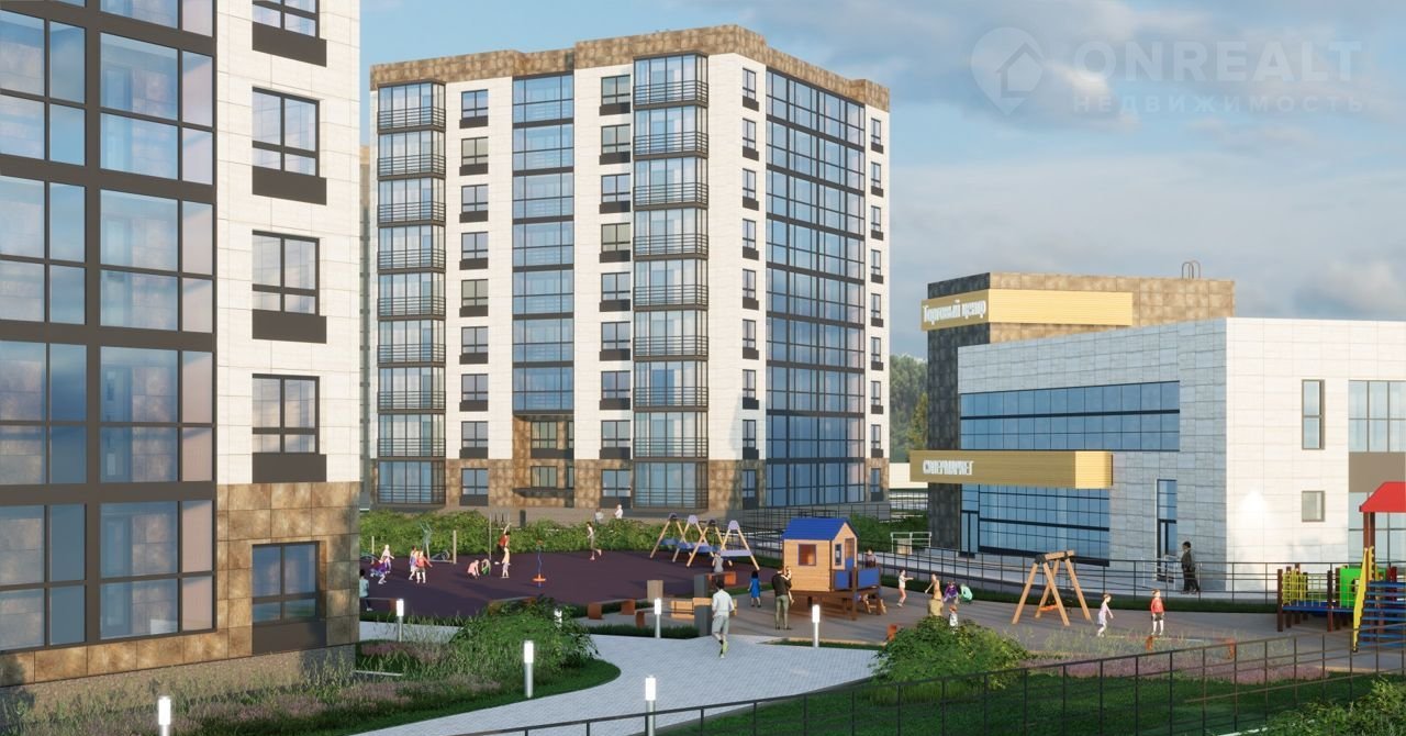 Благоустройство прилегающей территории предусматривает монтаж детской и спортивной площадок, парковочные места и озеленение.