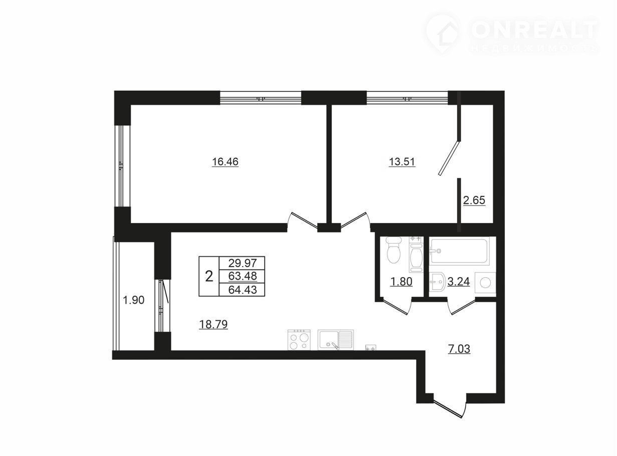Общая площадь 64.4 м2