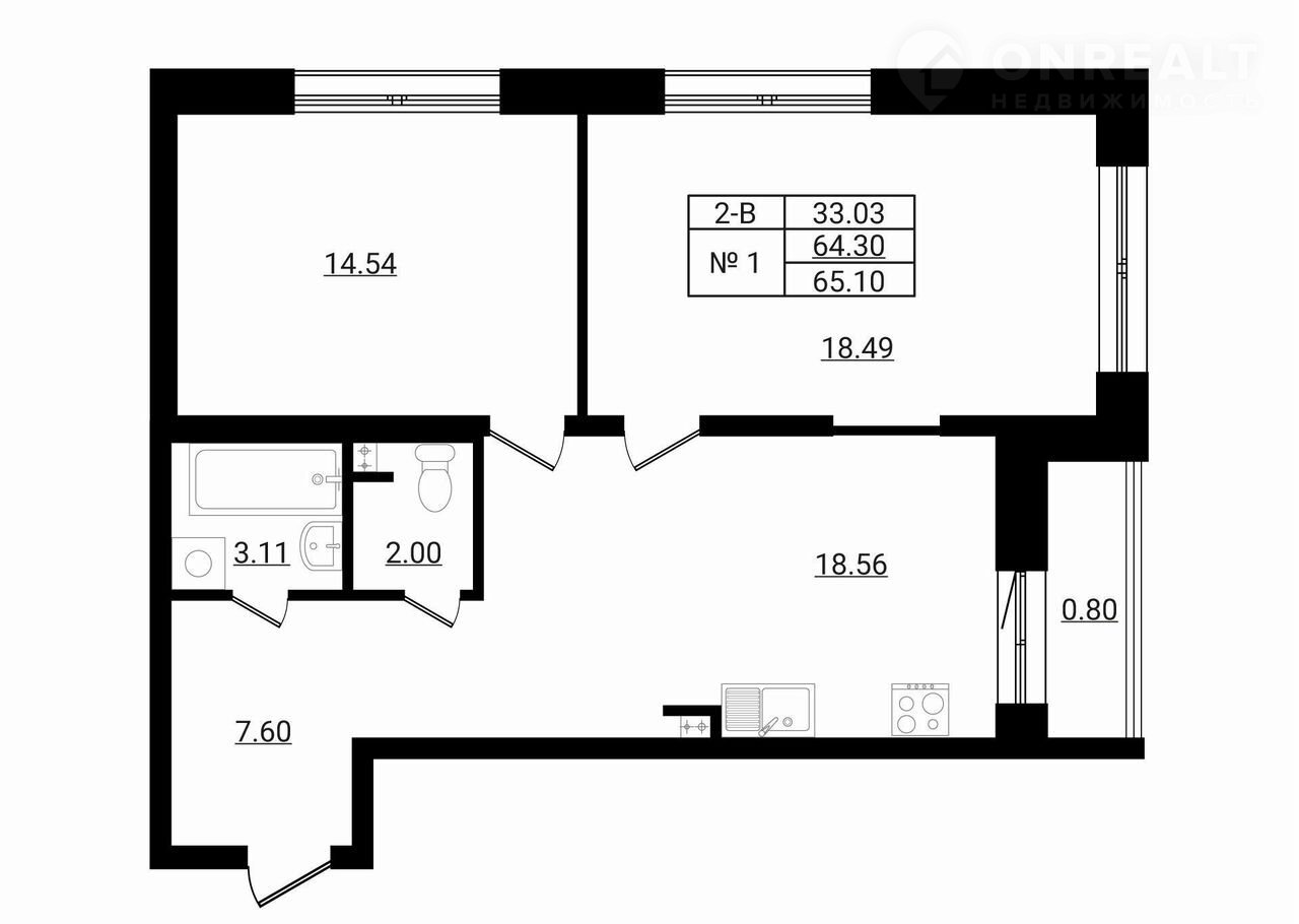 Общая площадь 65.1 м2