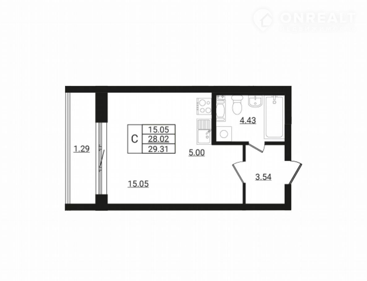 Общая площадь 29.3 м2