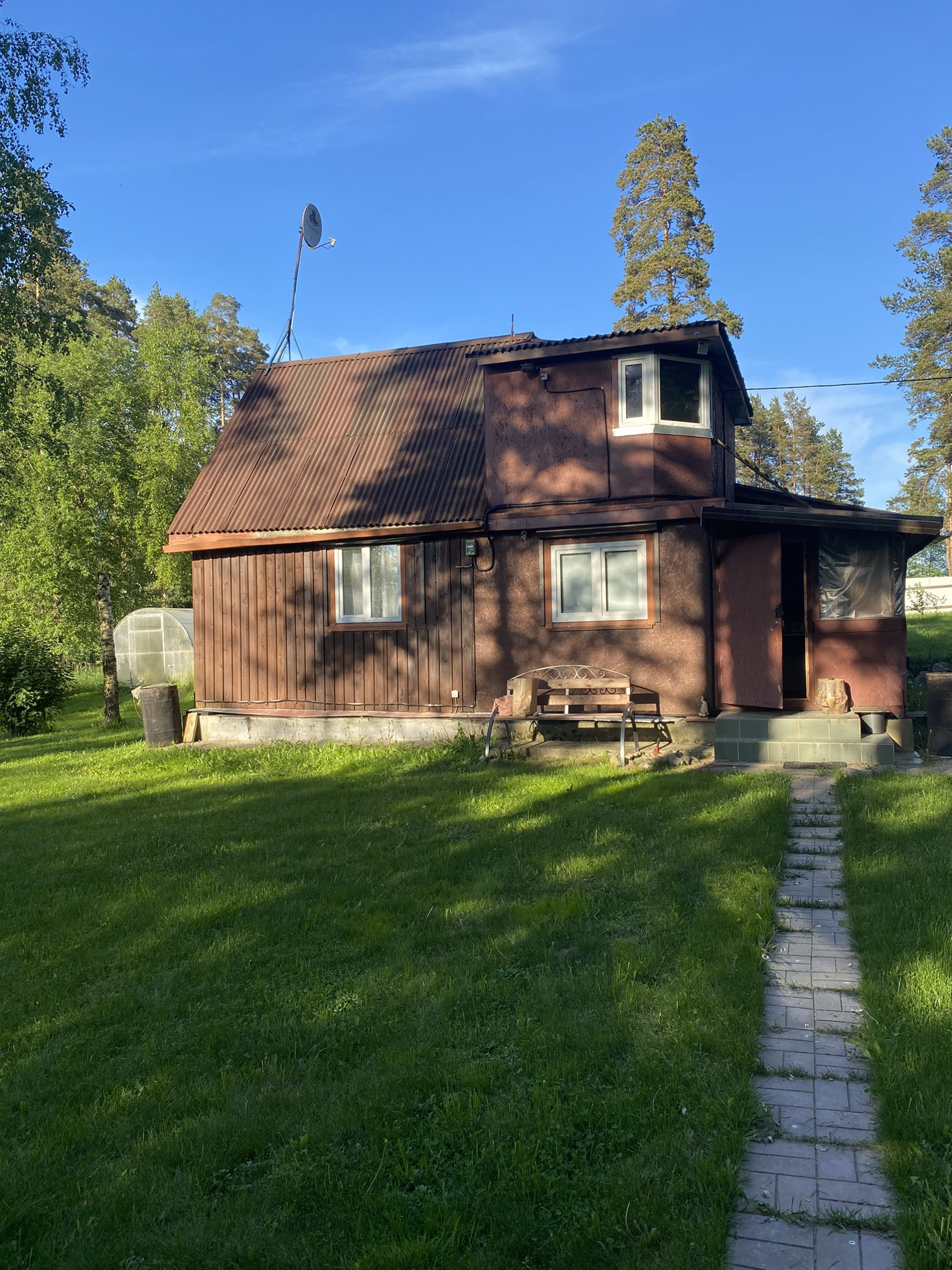 Зимний дом с большим участком в одном из красивейших мест Ленинградской области. Участок выровнен, разработан, посажены молодые деревья. По факту 25 соток. Лишние сотки не отделимы. Забор из профильного железа.
