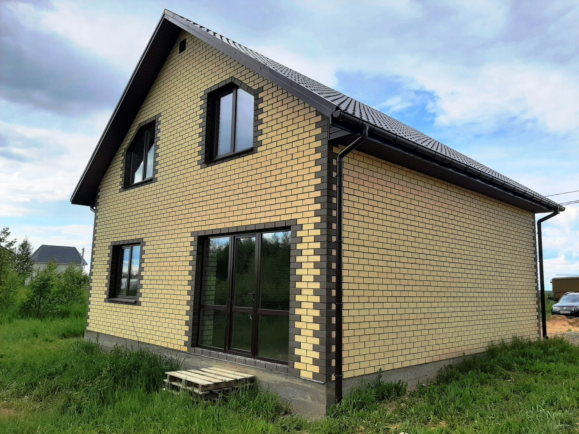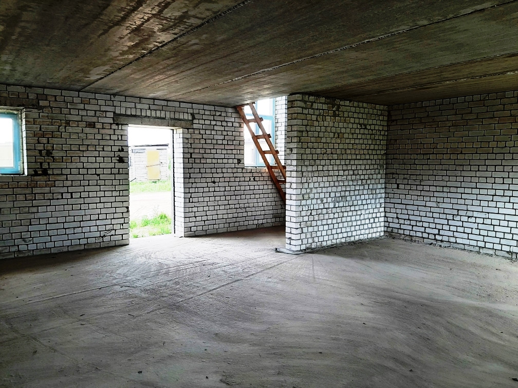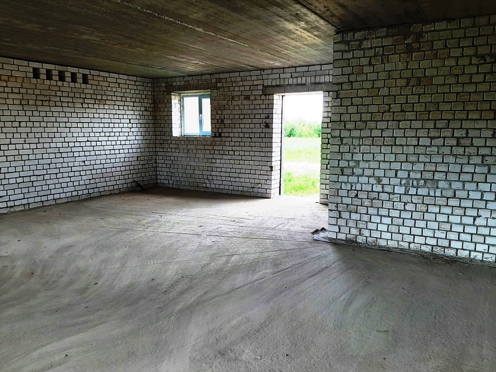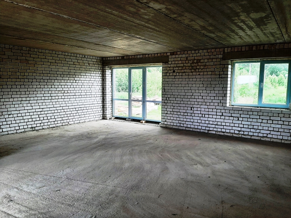 Перекрытия плиты - ЖБИ2, стеклопакеты - REHAU, кровля - металлочерепица. Черновая отделка.