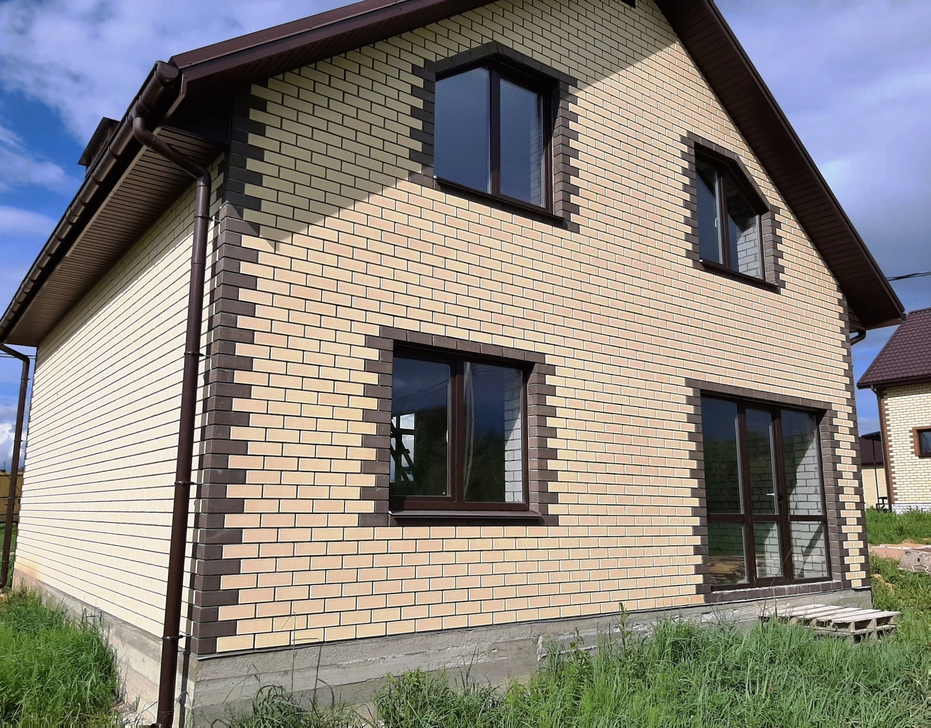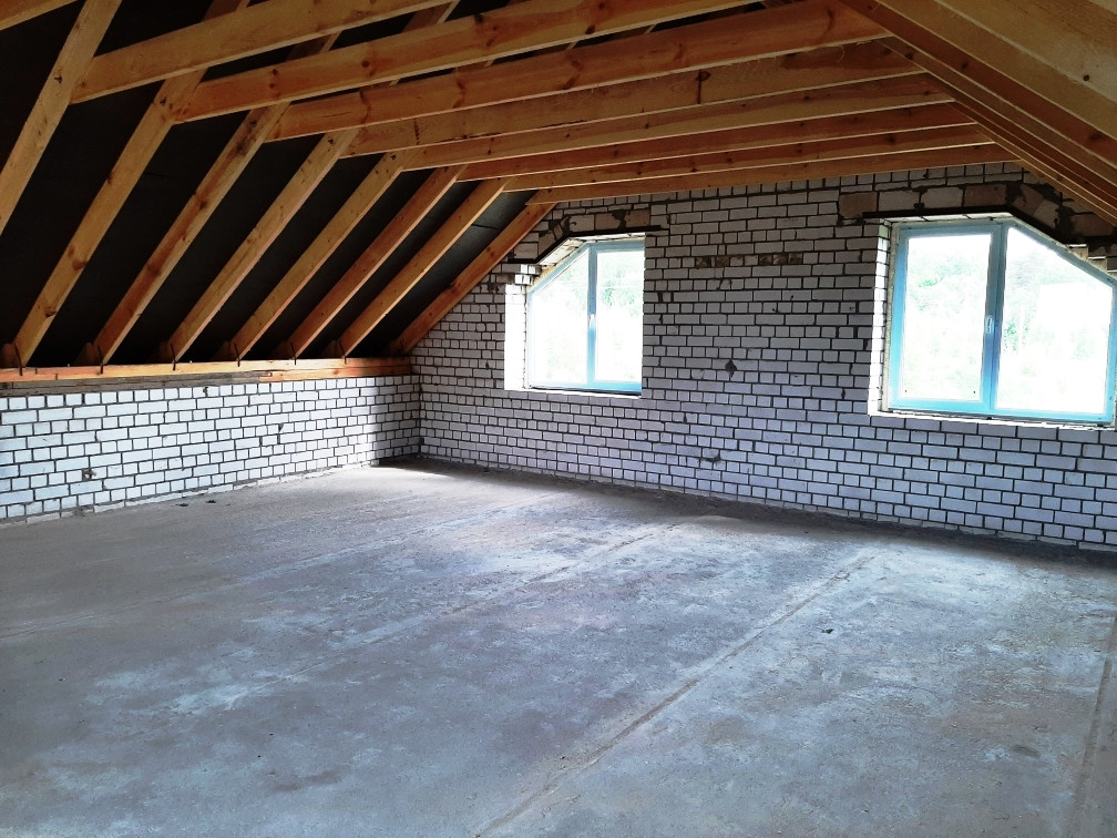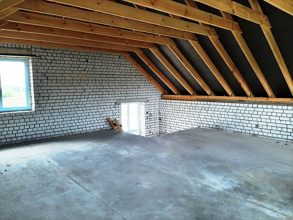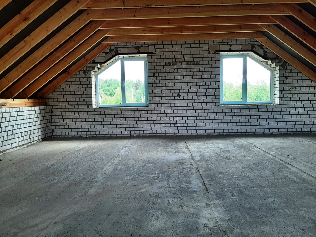 Перекрытия плиты - ЖБИ2, стеклопакеты - REHAU, кровля - металлочерепица. Черновая отделка.