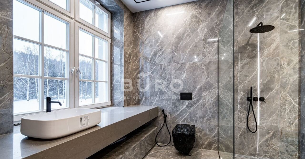 Шикарный интерьер дополнен изысканной мебелью и предметами декора. Потрясающее внутреннее убранство дома удовлетворит самый взыскательный вкус и поразит эстетов. Большая площадь остекления делает дом очень светлым и уютным.