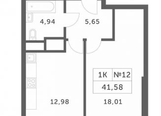 1-ком. квартира на продажу, 41.6 м2, улица Липовой Рощи, 1к1