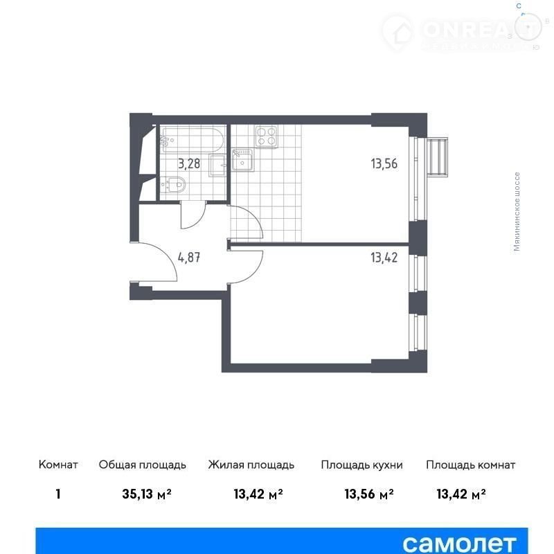 Общая площадь 35.1 м2